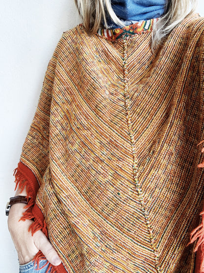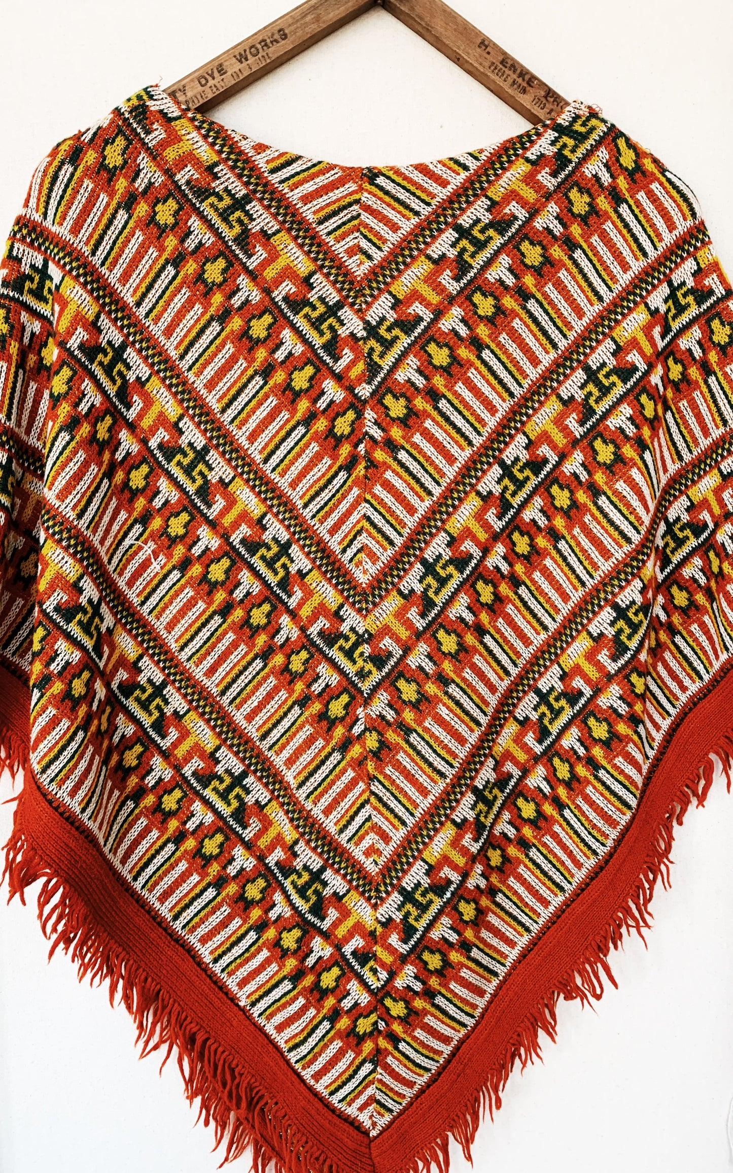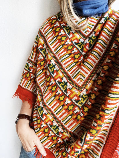 Colorful vintage acrylic knit poncho. Lightweight, shorter length. Cute! And soft, easy to throw on. In great shape. Reversible! I like the inside out best 🤷🏼♀️