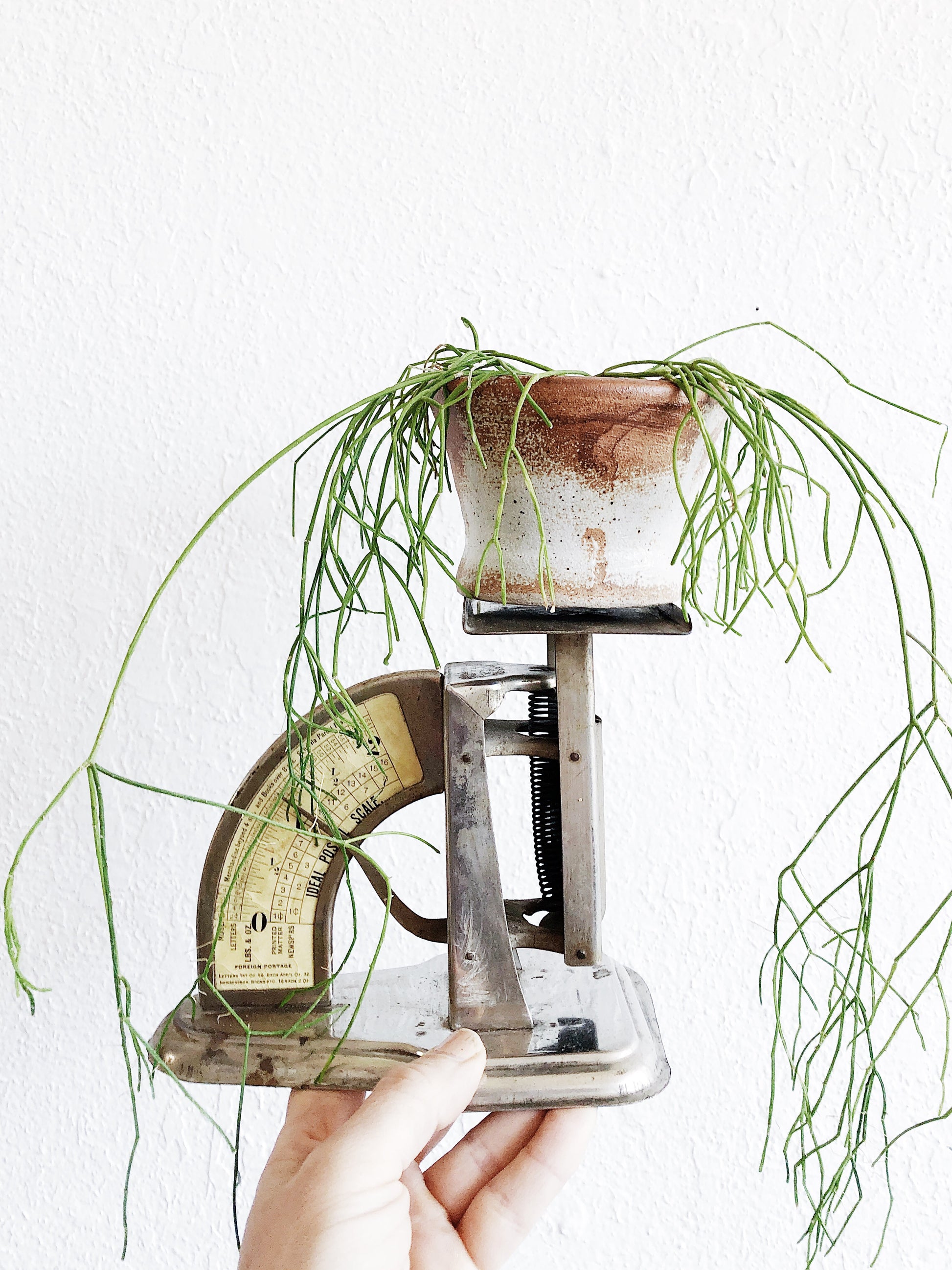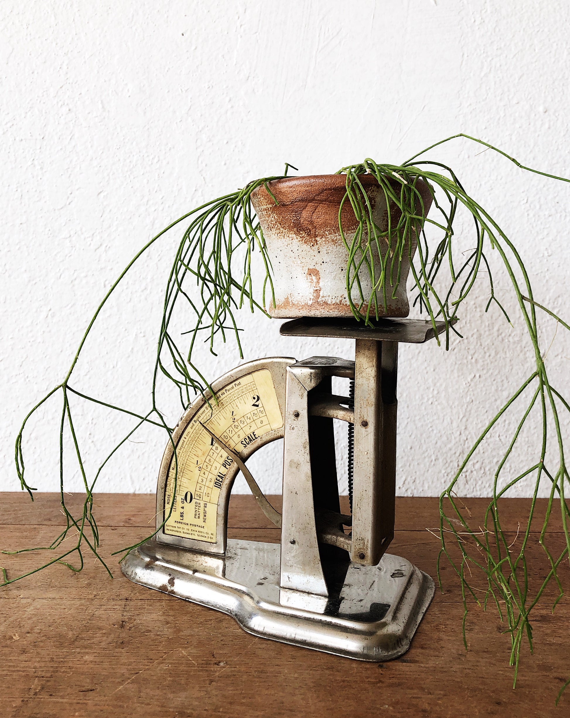 We love these old postal scales for their vintage industrial look. Displaying plants on them is one of our favorite ways to use them
