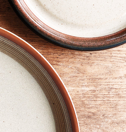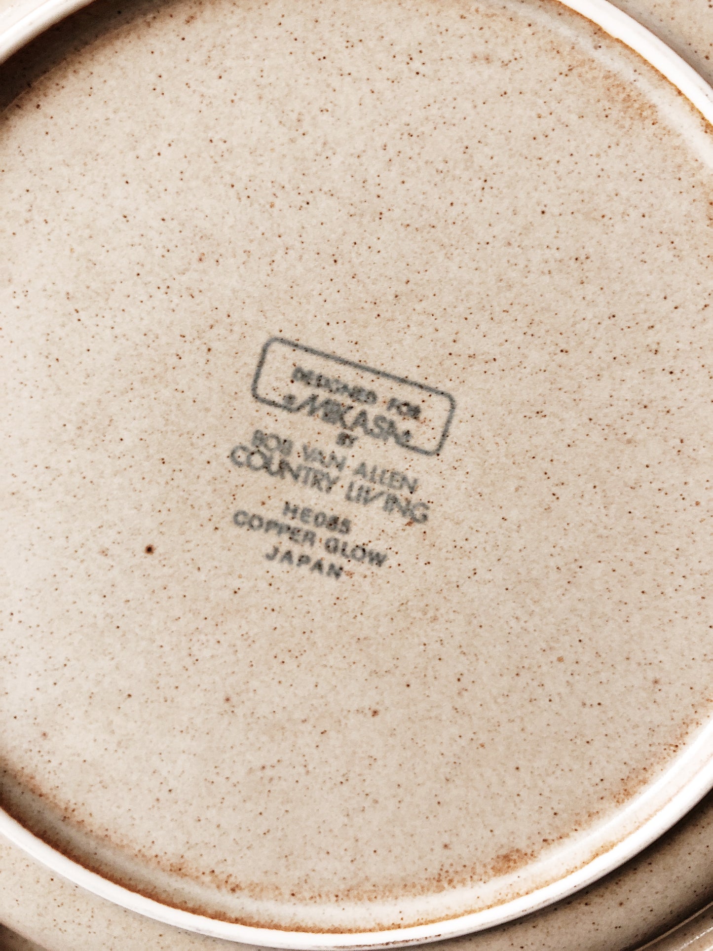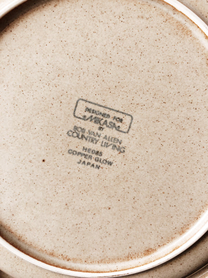 Salad plates: Copper Glow pattern. Copper and dark rim on flecked ground.