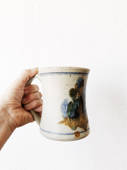 An oversized set of pottery mugs, signed. Pretty abstract glaze combination. These are hefty!