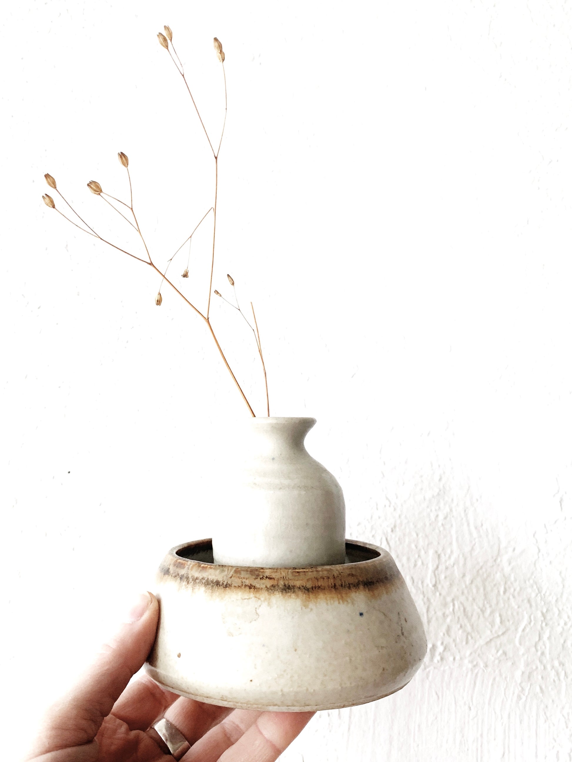 Lovely vintage double pottery vase. Put stems in the tall vase and blooms in the bottom. So pretty!