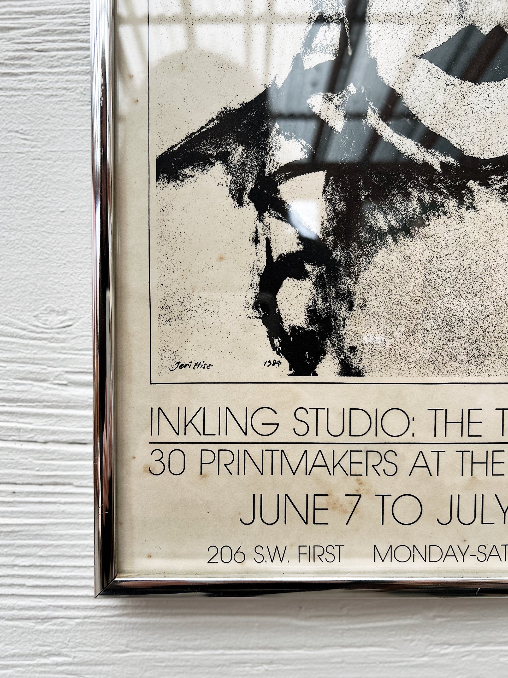 Circa 1984 Inkling Print Show exhibit poster Portland Oregon. Lithograph on paper presented under glass in a chrome museum mount.