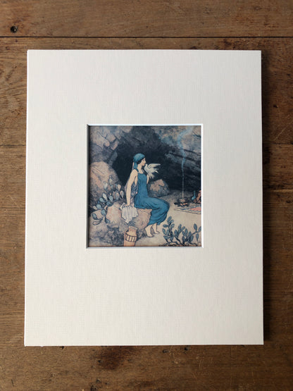 A sweet vintage print titled ‘The Ritual’. Lovely colored illustration matted in cream stock