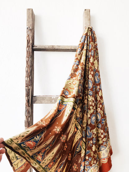 Vintage weighty cotton rayon textile with lovely drape. Colors are outstanding. Tablecover, wrap, scarf, throw...beautiful in any and every way
