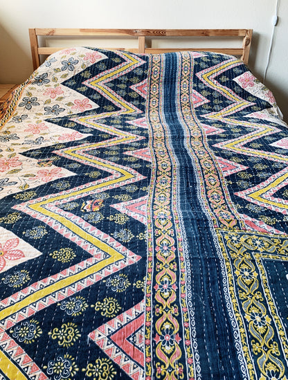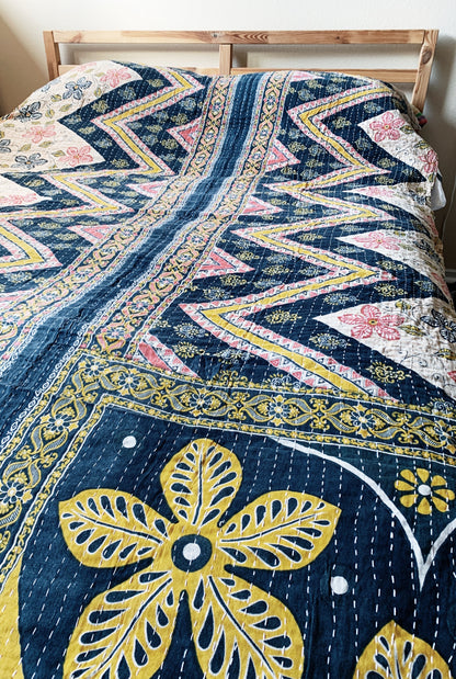Vintage Reversible Cotton Kantha Quilt