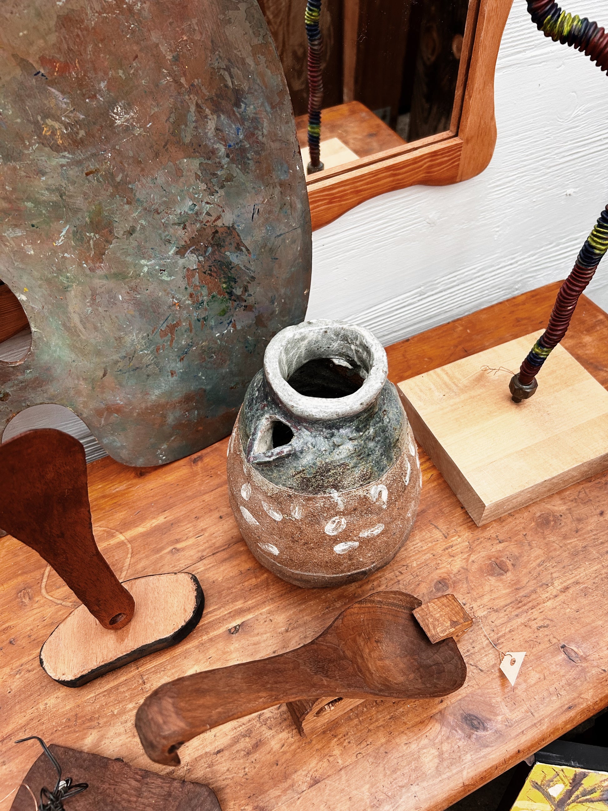 "My creations are for people who like to feel hold and play with Art. I am a self-taught artist who makes wry constructions that combine original wood carving and nostalgic junk to re-create the imaginings and memories of my life. My work is inspired by 40 years of studying and collecting American antiques, folk art, crafts, and tools"