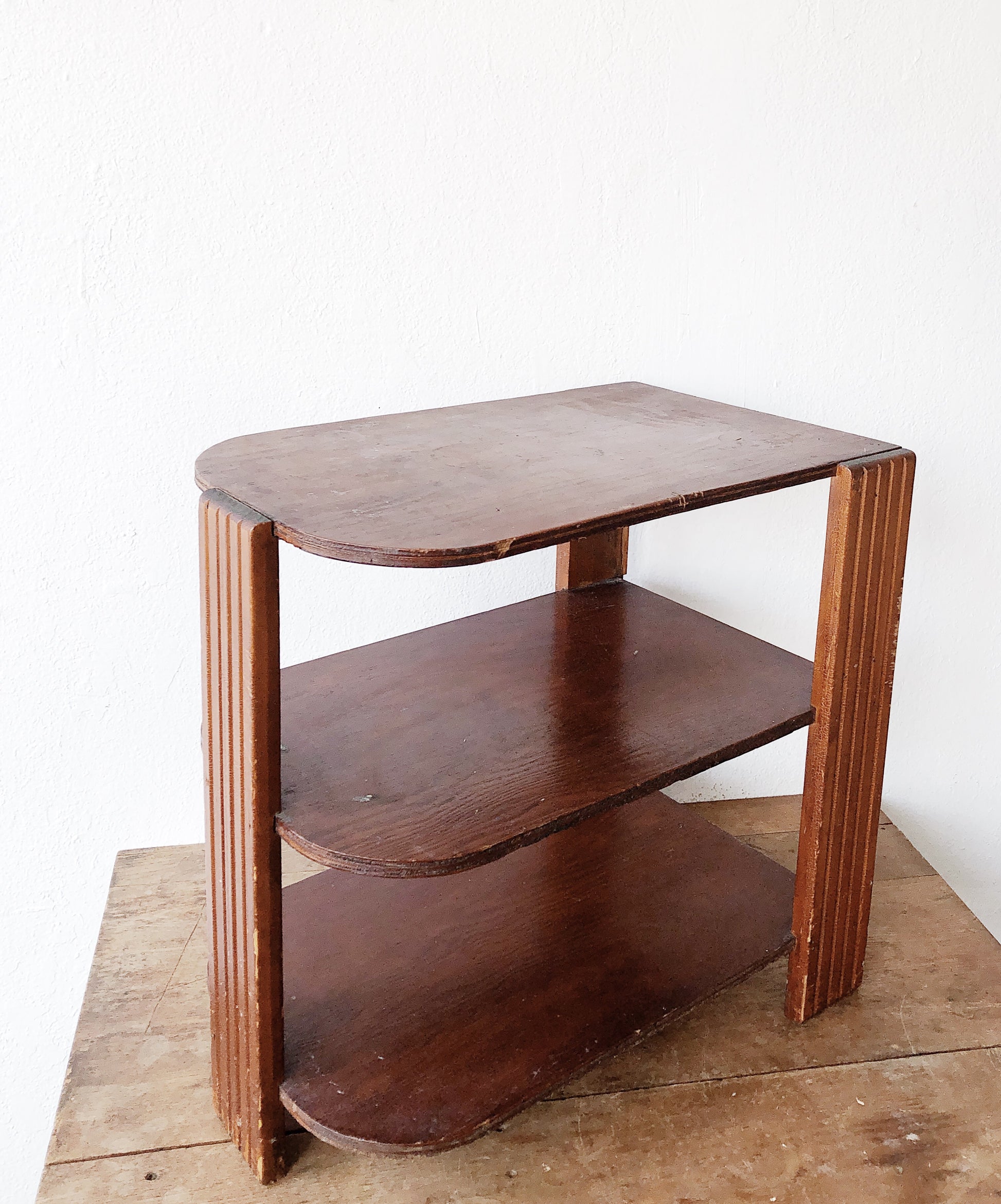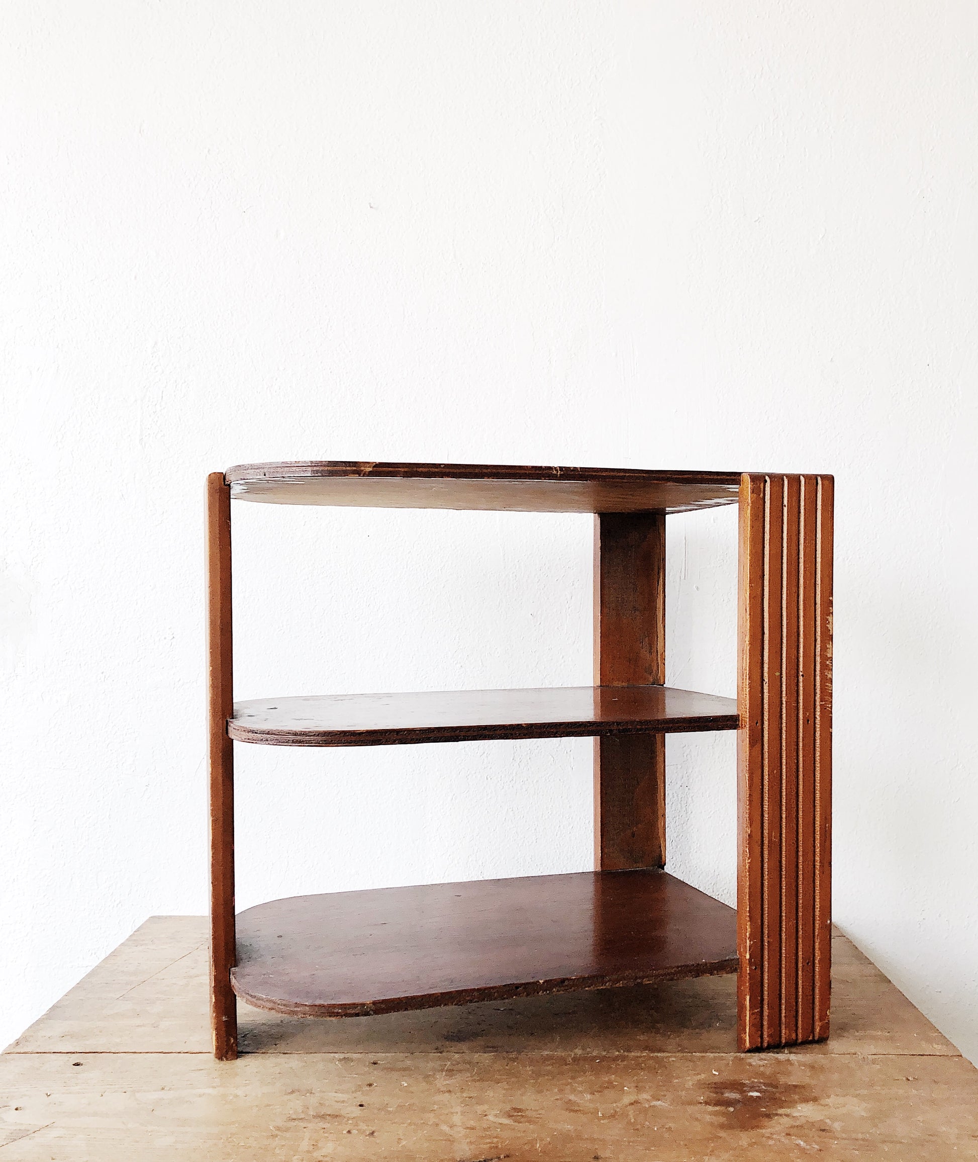 Vintage Art Deco wood bookshelf with a nice rounded edge. Can be used on the floor, or even atop a table.