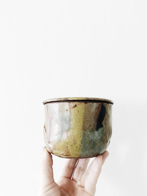 A nice vintage lidded crock/ ceramic salt cellar. Beautiful Desert colors