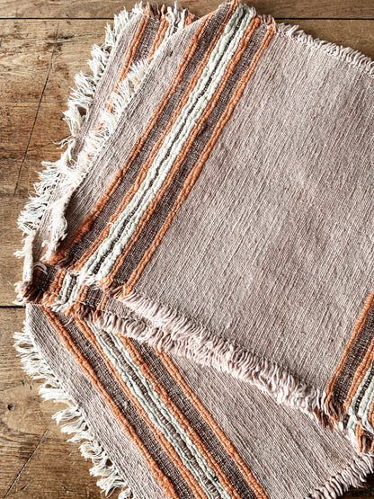 A lovely set of four vintage cotton placemats. In. Ice condition overall, one of the mats has a few minor spots. All have original soft labels, made in Pakistan.