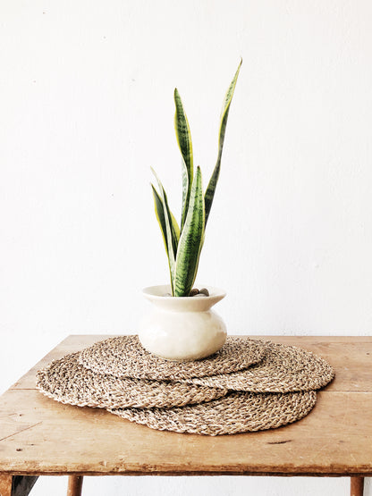 Set of four large oval vintage seagrass mats. Nice and thick.