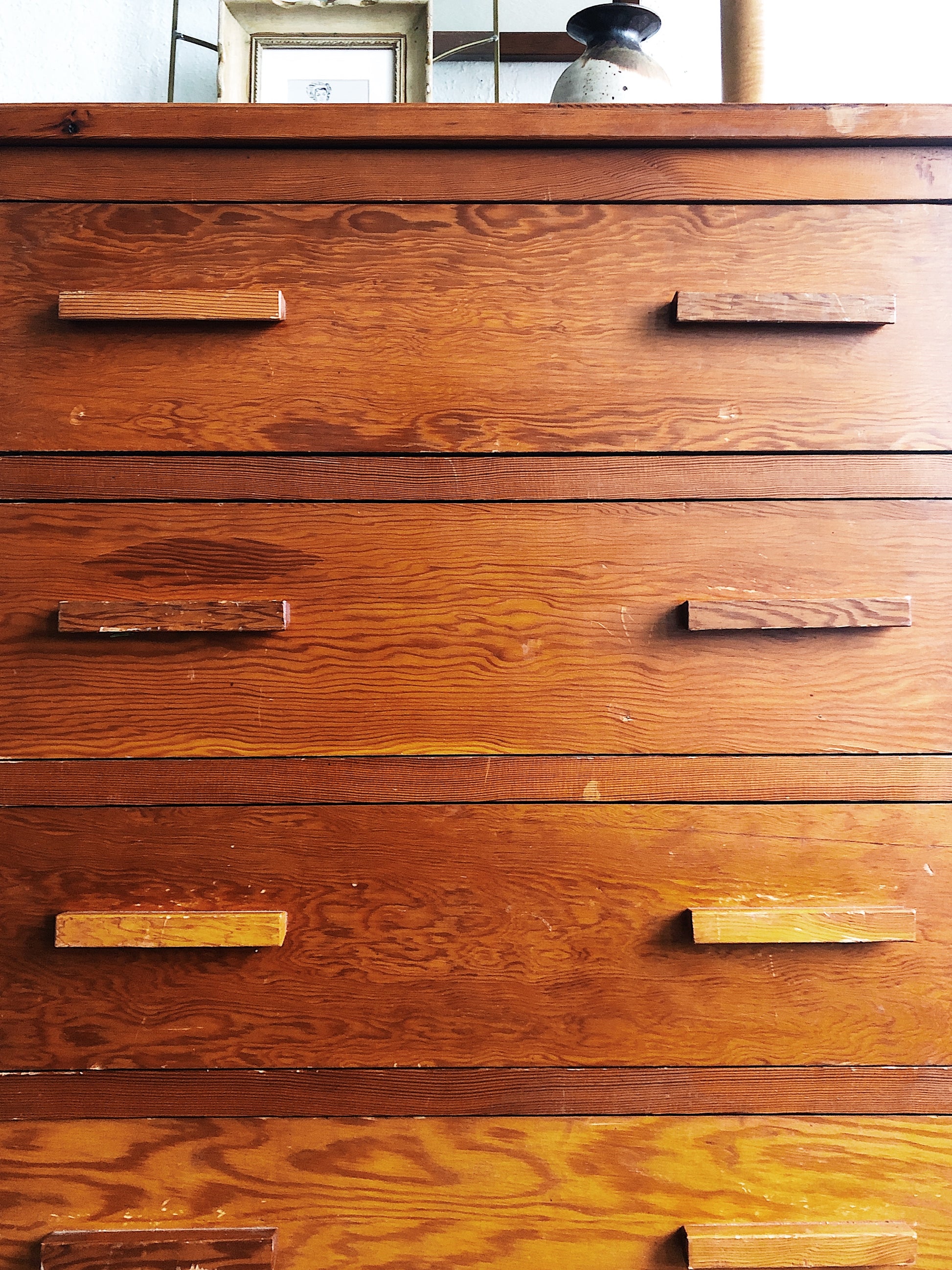 Vintage Handmade wood dresser. Simple modern pulls on drawers. Nice clean lines overall.