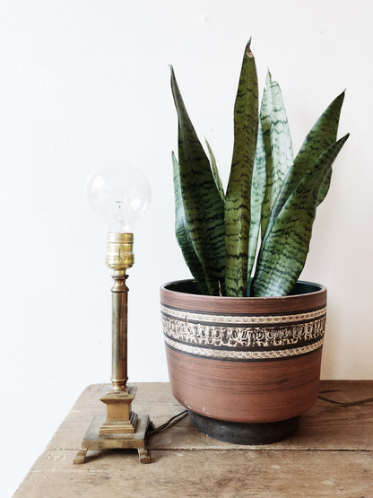 A vintage lamp in sold brass. Weighty, and just the right smaller size for a nightstand or shelf/nook
