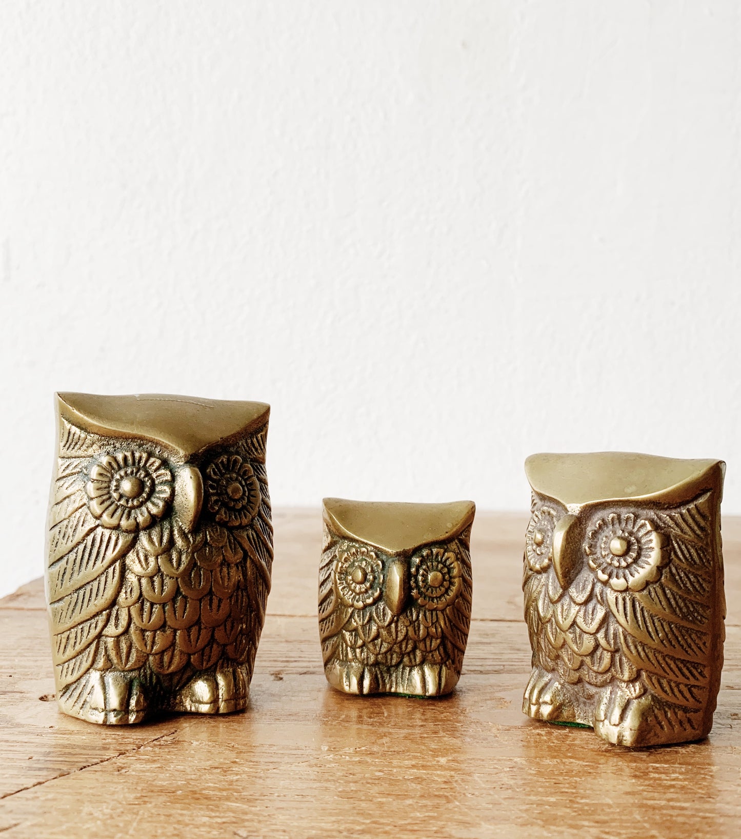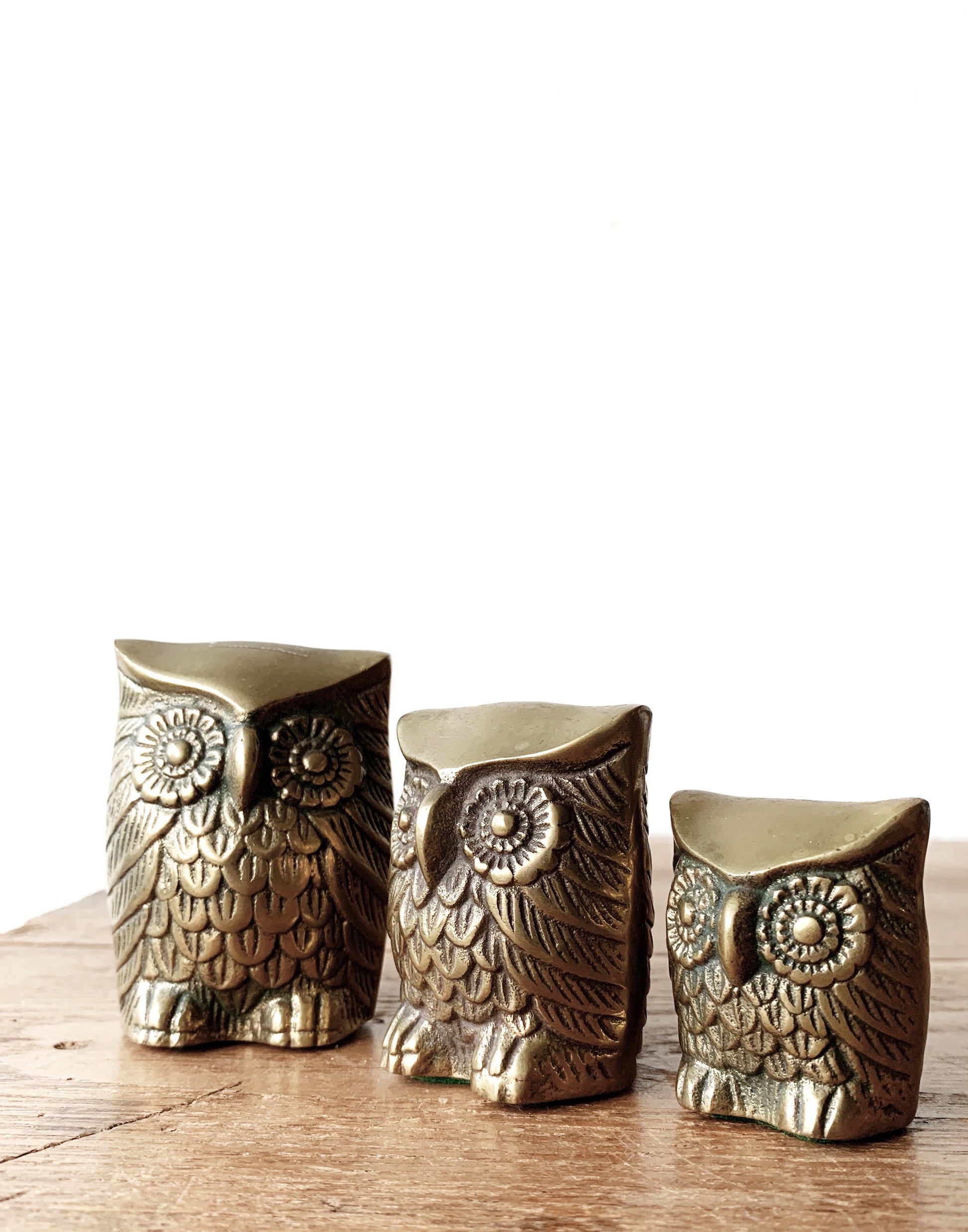 Vintage Solid Brass Owl Trio