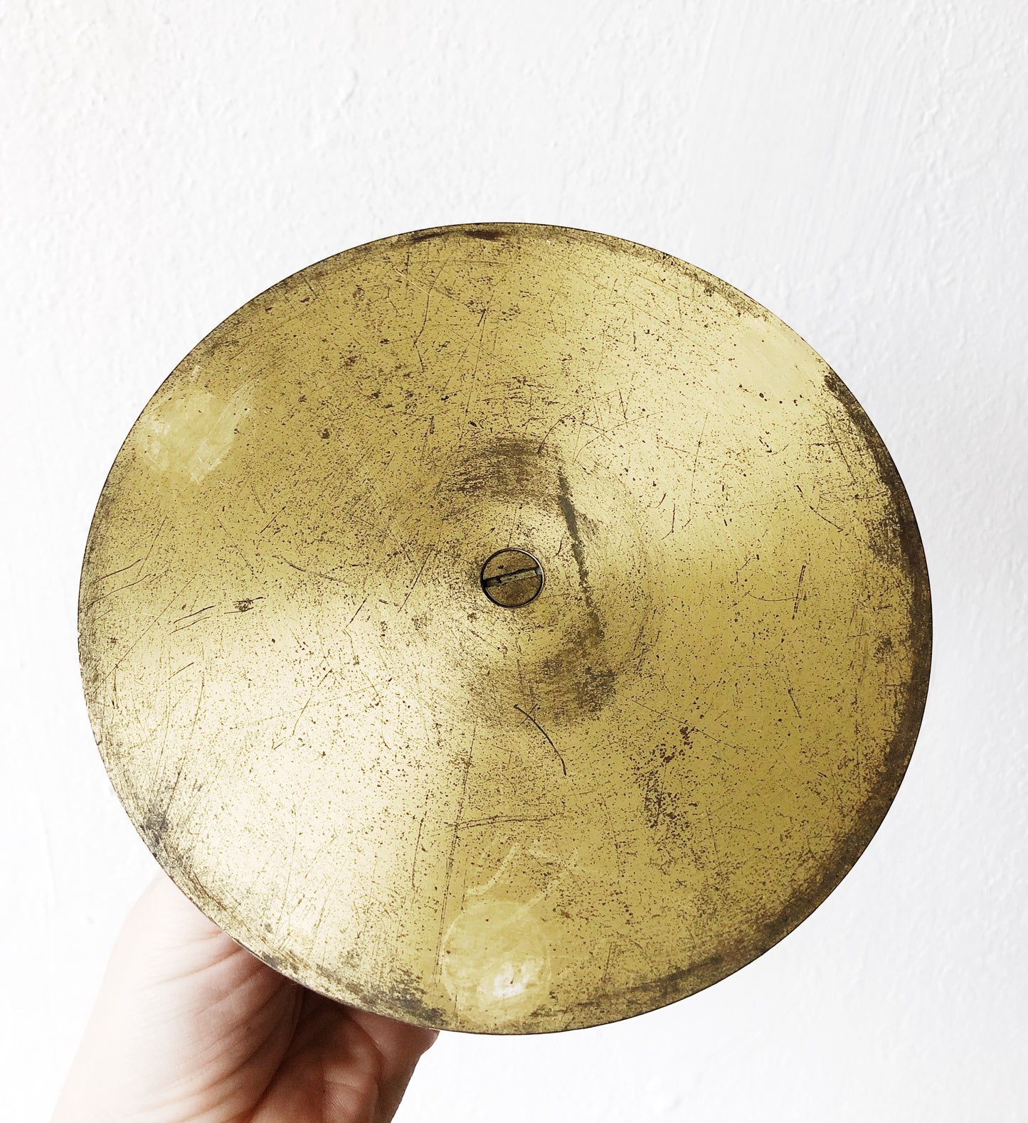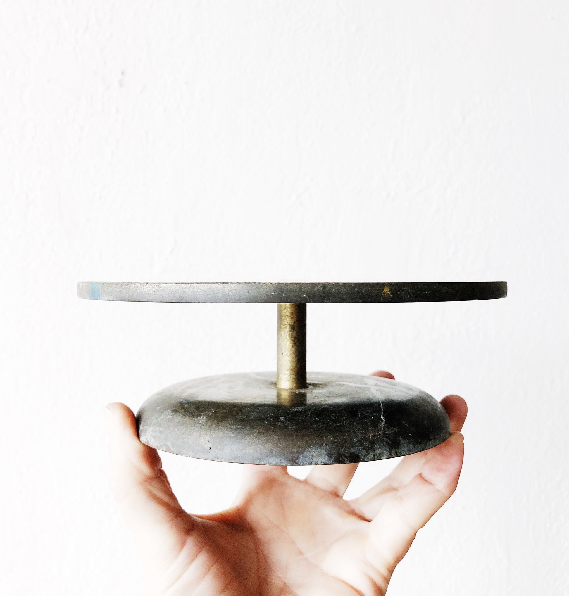 Most likely used for cake decorating or pottery, this spinning brass stand is solid and heavy. A beautiful piece for displaying a treasured item or favorite plant