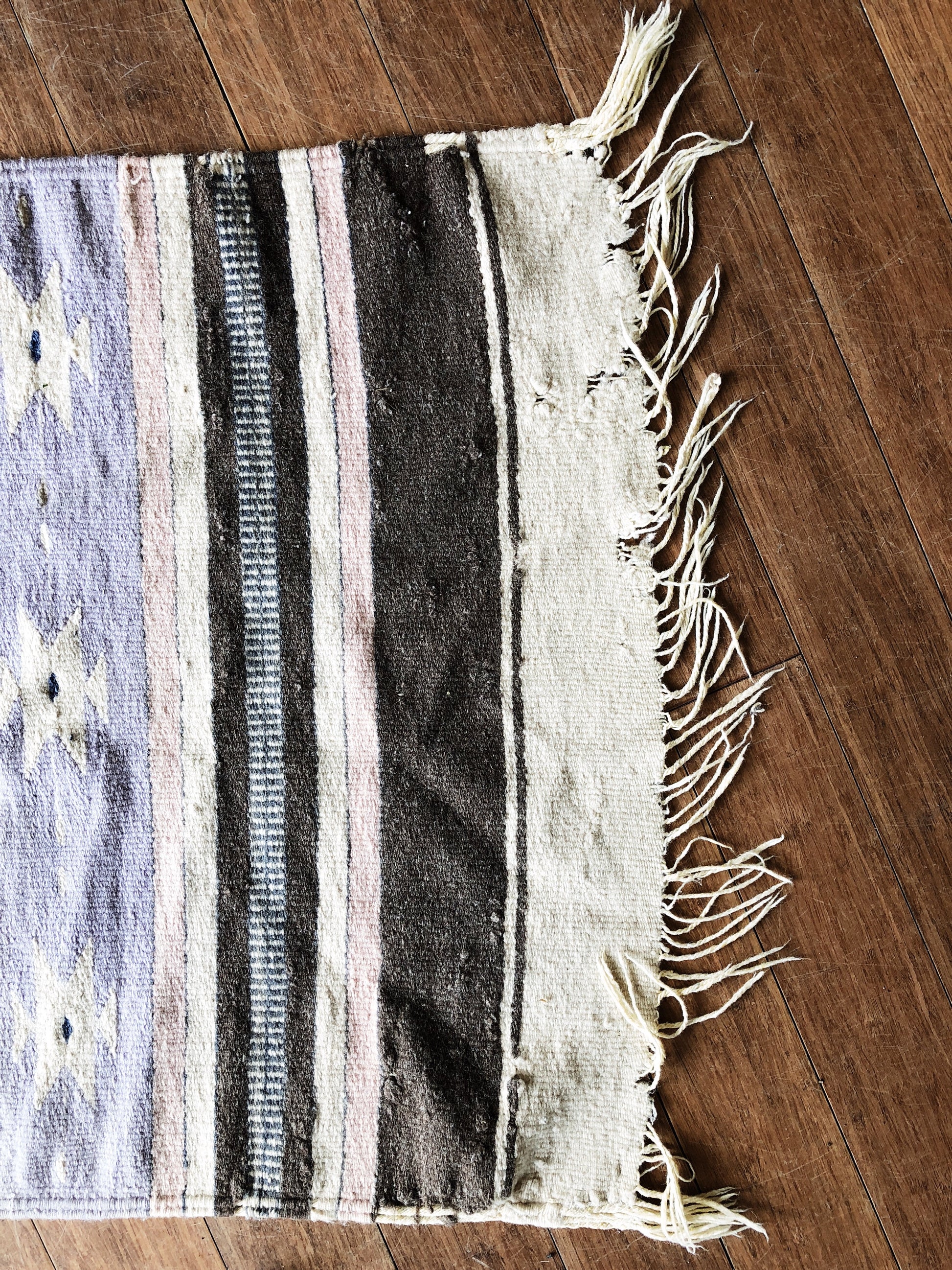 Beautiful colors on this southwest runner rug. Just the right amount of tatter. Super soft underfoot making this perfect near the bed. Try hanging it as textile art.