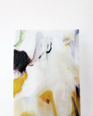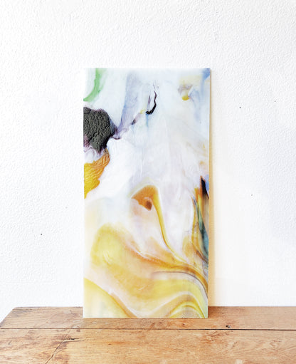 A smaller slag/stained glass panel in the prettiest marbled colors. We like to prop these or hang by plate hangers as art. Sorry, too fragile to ship.