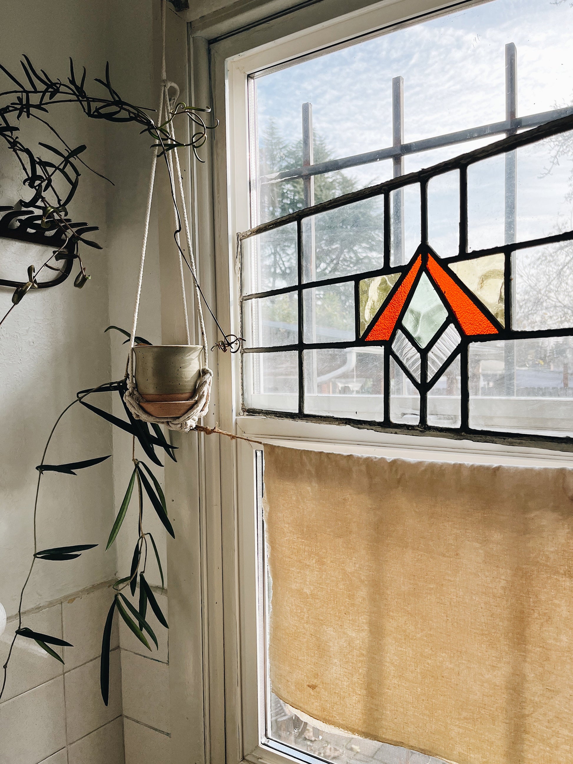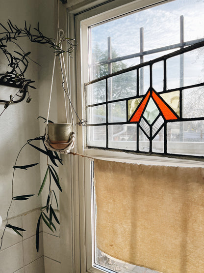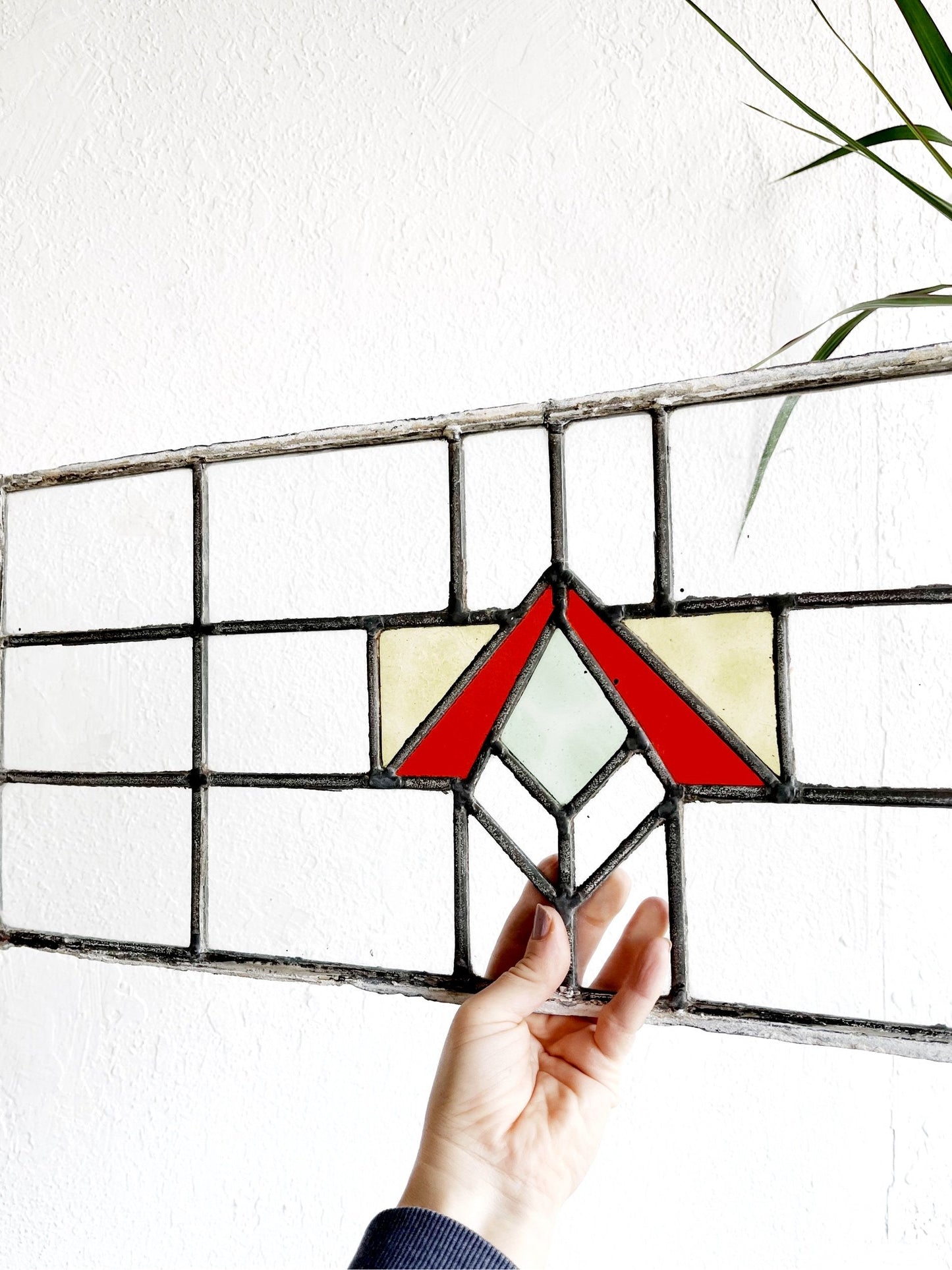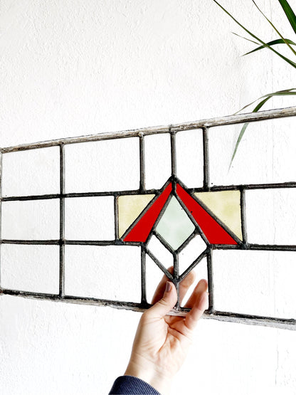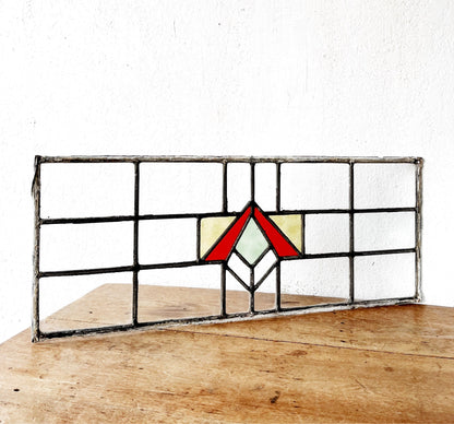 Deco era panel in stained and leaded glass. Has some bend or play in the center. Due to the fragility of this one we will not be able to ship it.