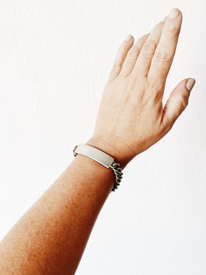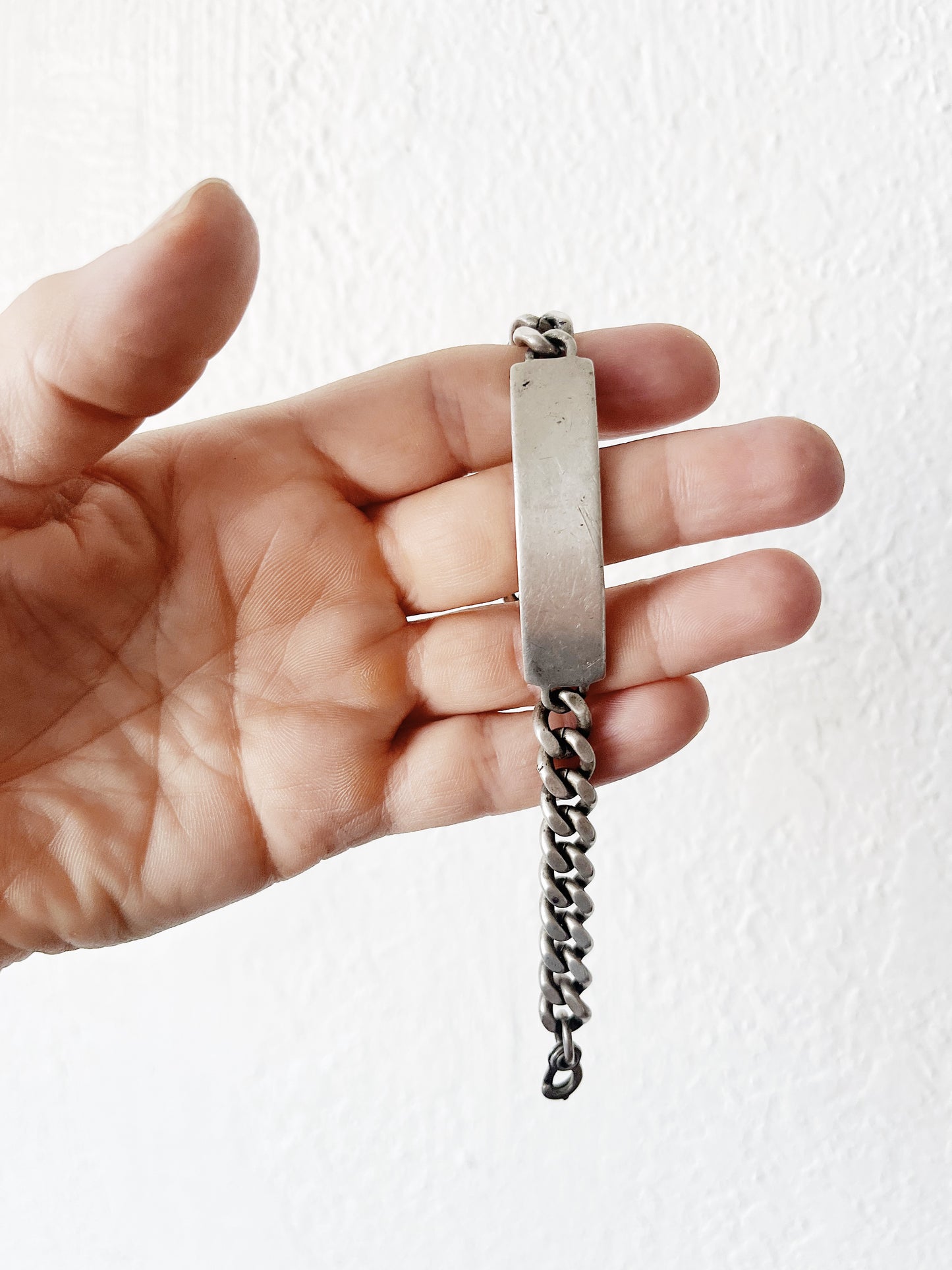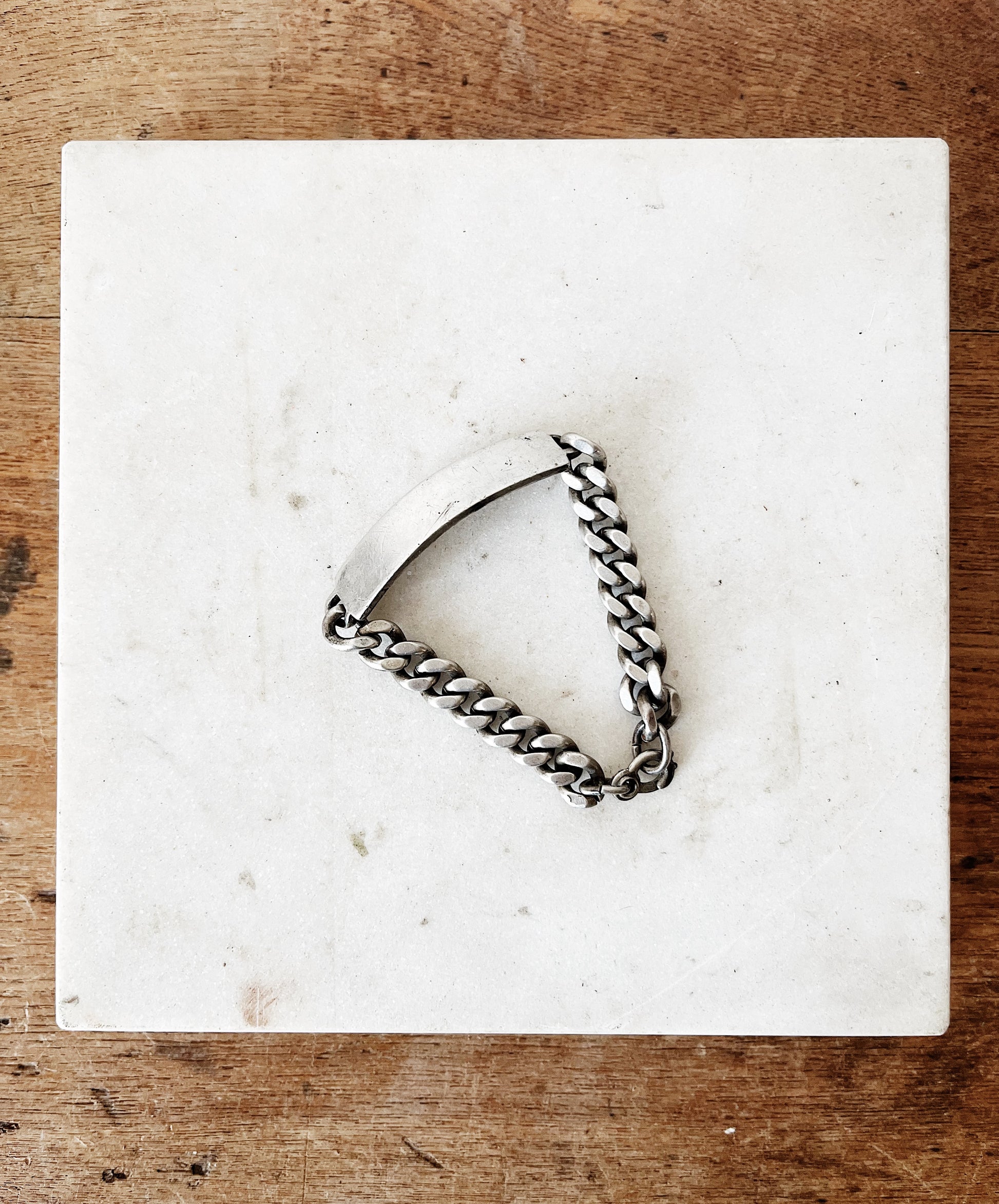 Chunky sterling silver signet or ID bracelet. Matte finish with nice thick chain.