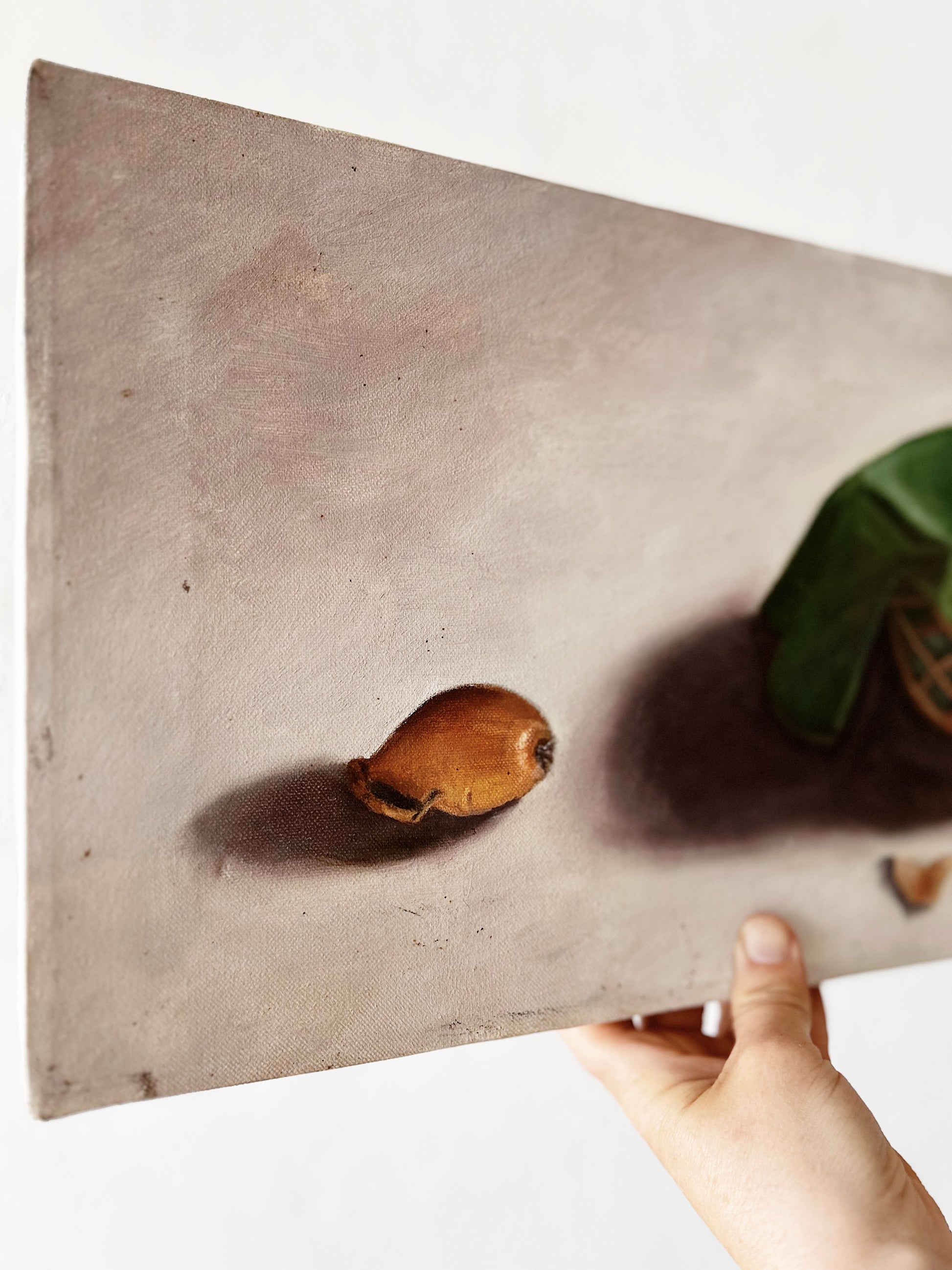 Lovely old still life depicting the common beauty of the onion. Such pretty colors and light, almost powdery. Painted on stretched canvas and signed T Williams