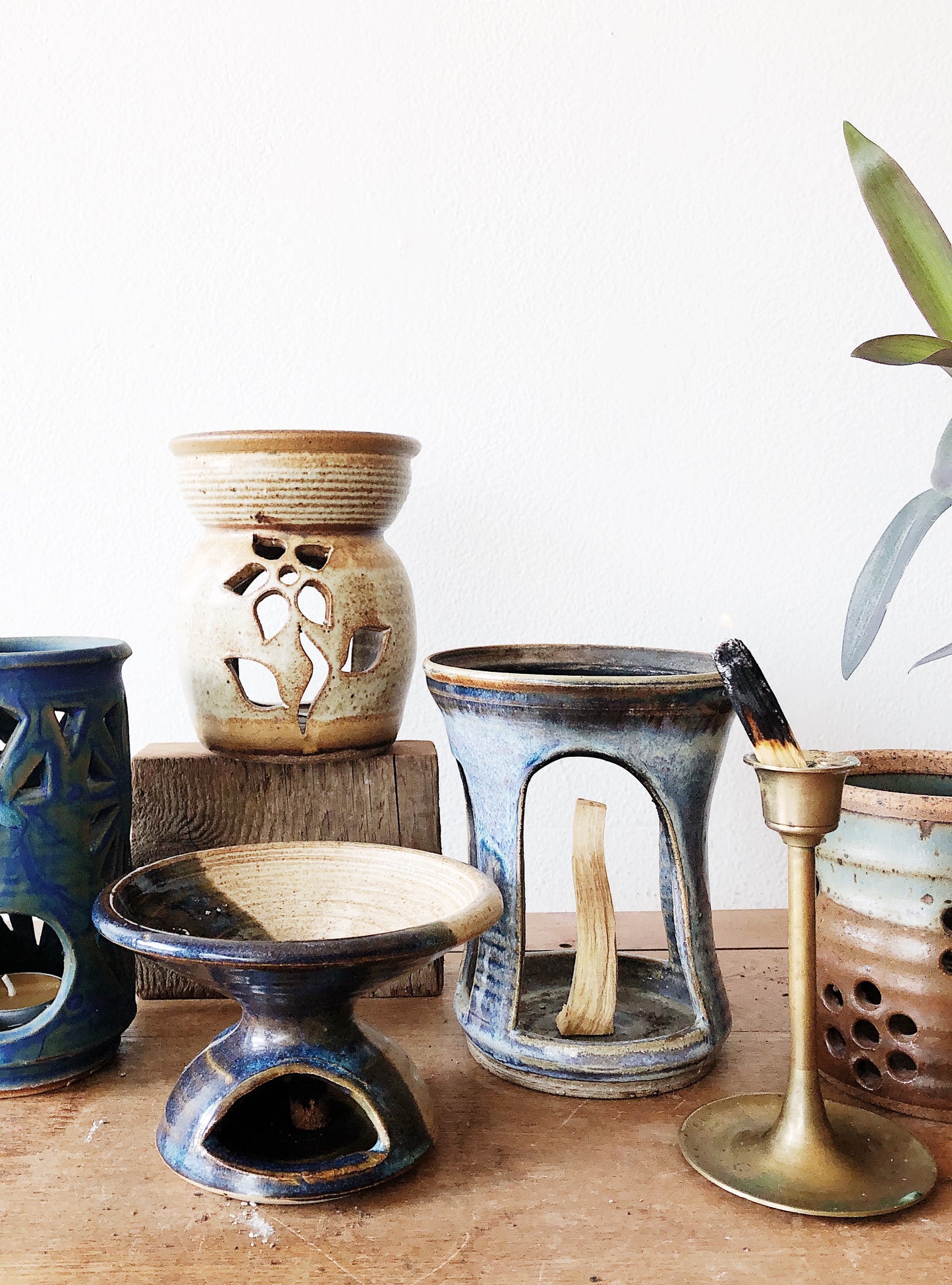 Vintage ceramic stoneware Luminary. Please also work really great for burning incense sage or Palo Santo
