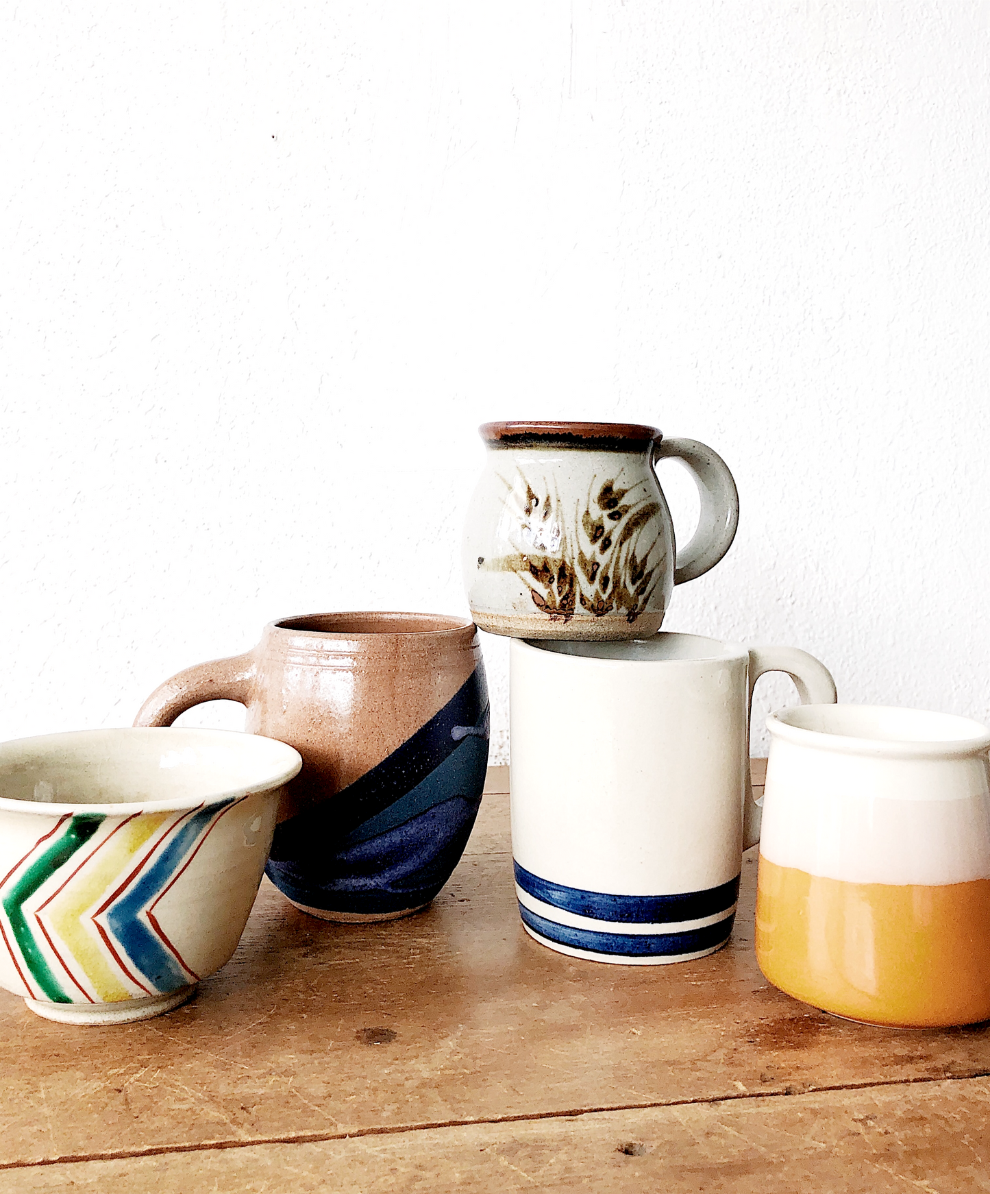 Vintage Stoneware mugs that would make a beautiful mid matched set. Fantastic glazes.