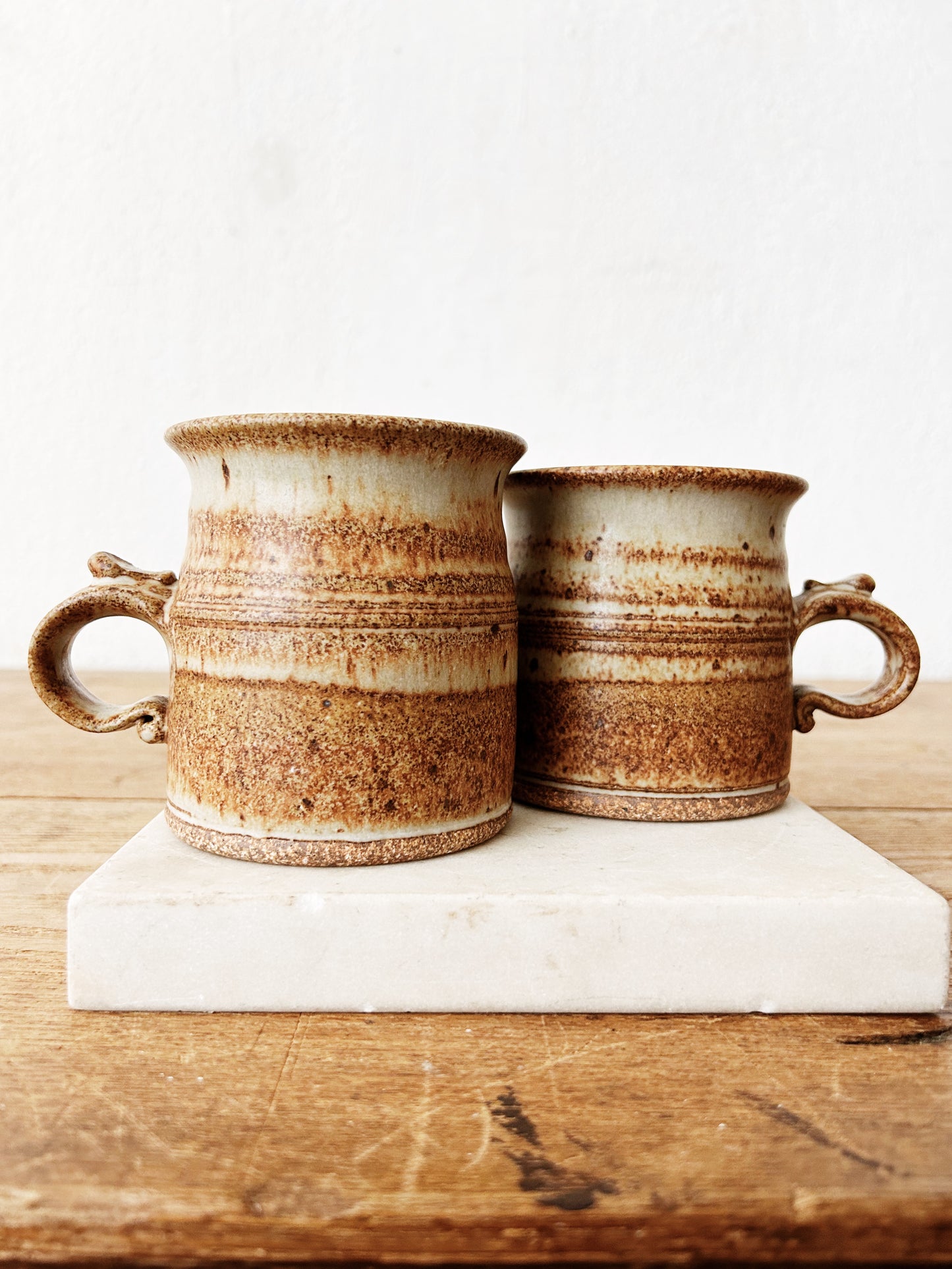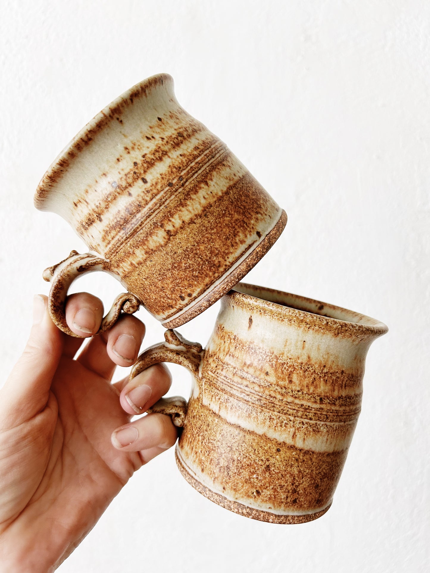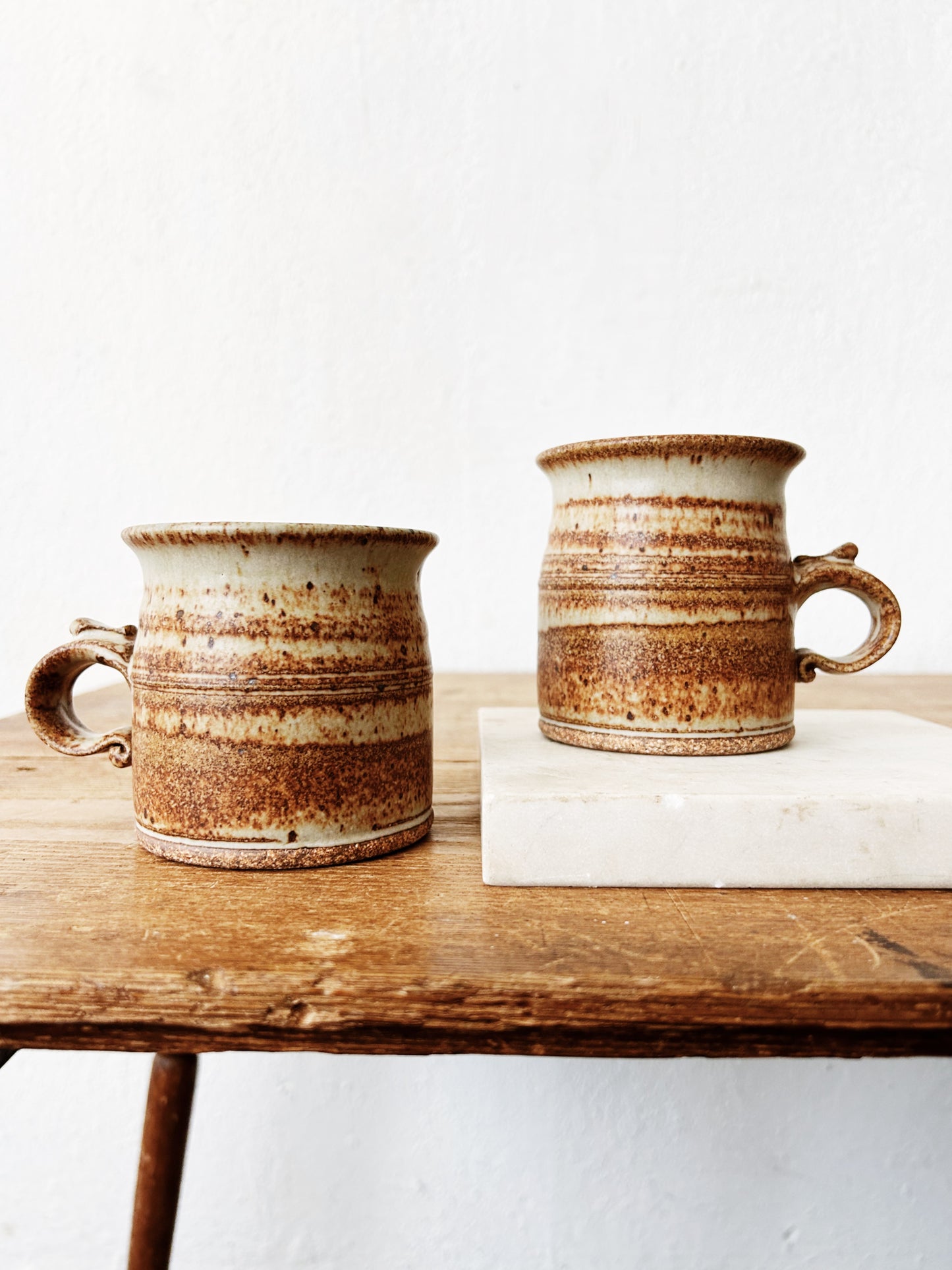 Perfect vintage stoneware mug pair. Earthy matte glaze with comfortable handle. 14oz
