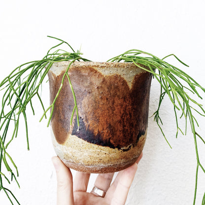 Gorgeous vintage weighty stoneware pot with drainage.