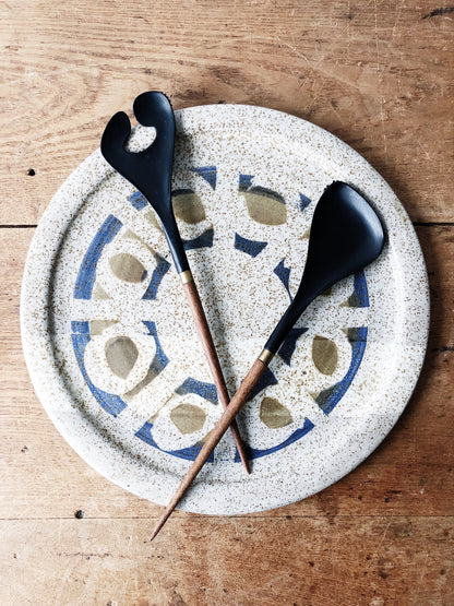 Large stoneware serving plate with a wonderful pattern. It’s stamped on reverse with maker but we couldn’t make it out