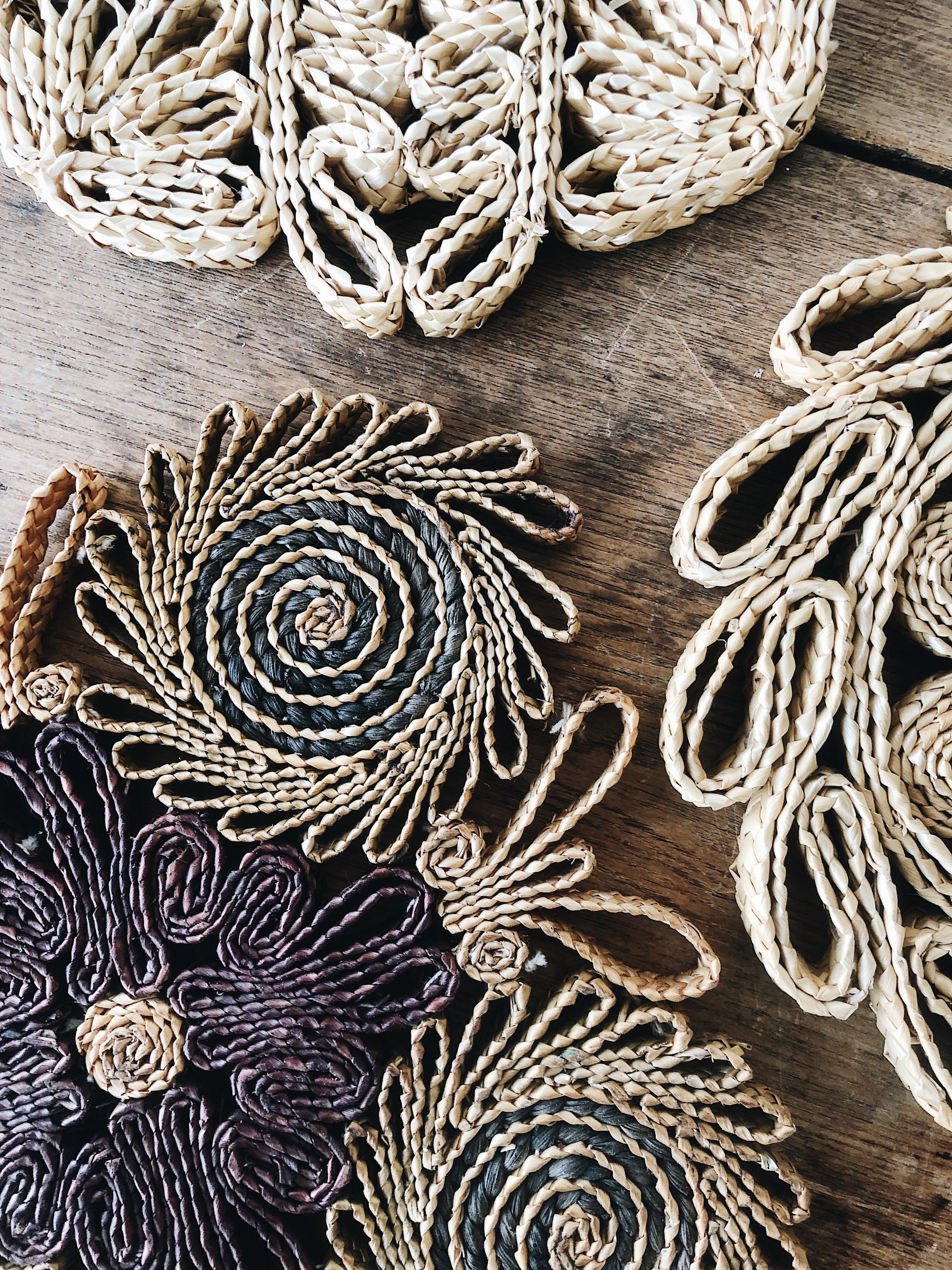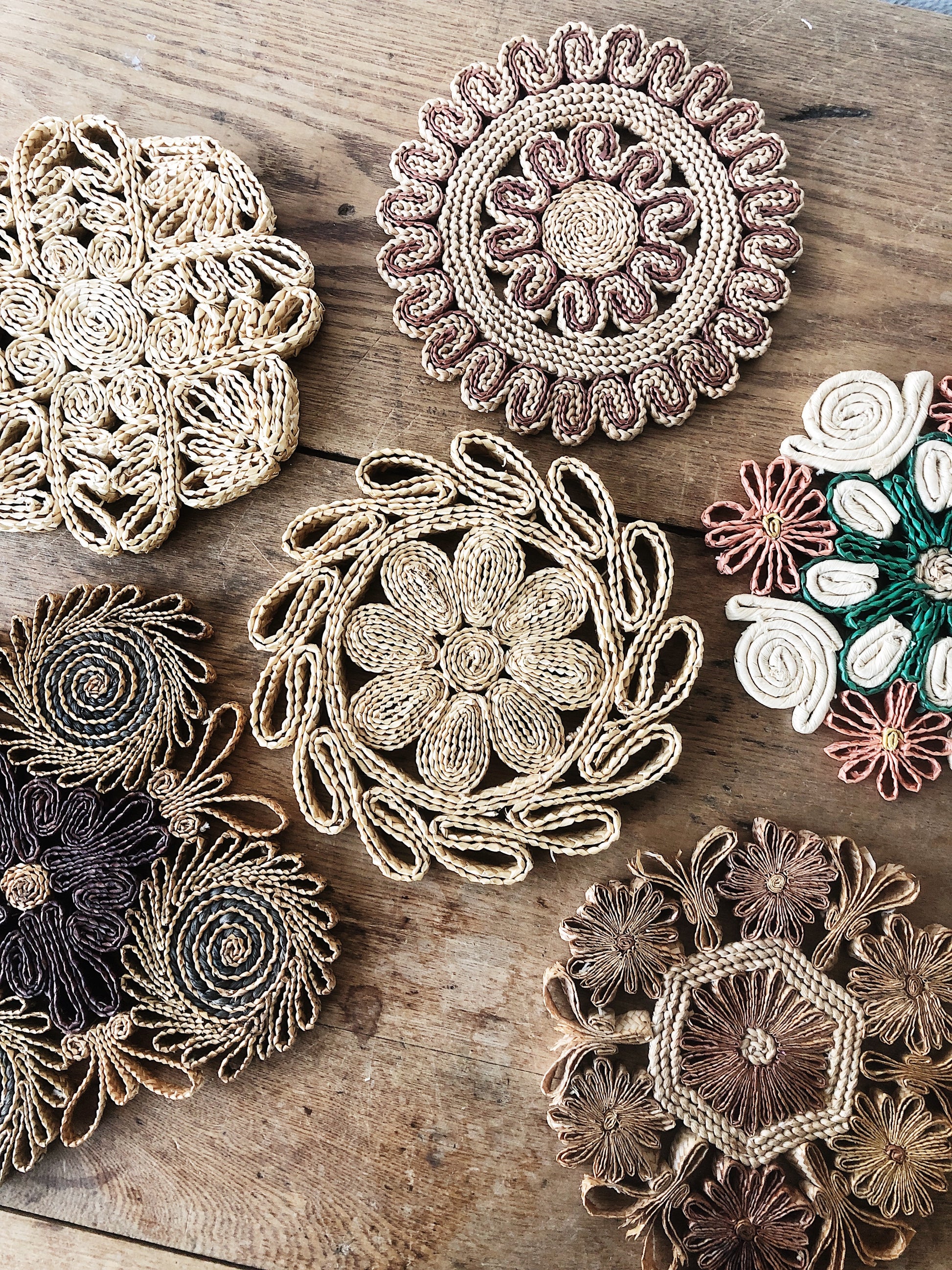 We’re suckers for these vintage straw trivets. Faded and lovely, they look as beautiful on the wall as they do on the table