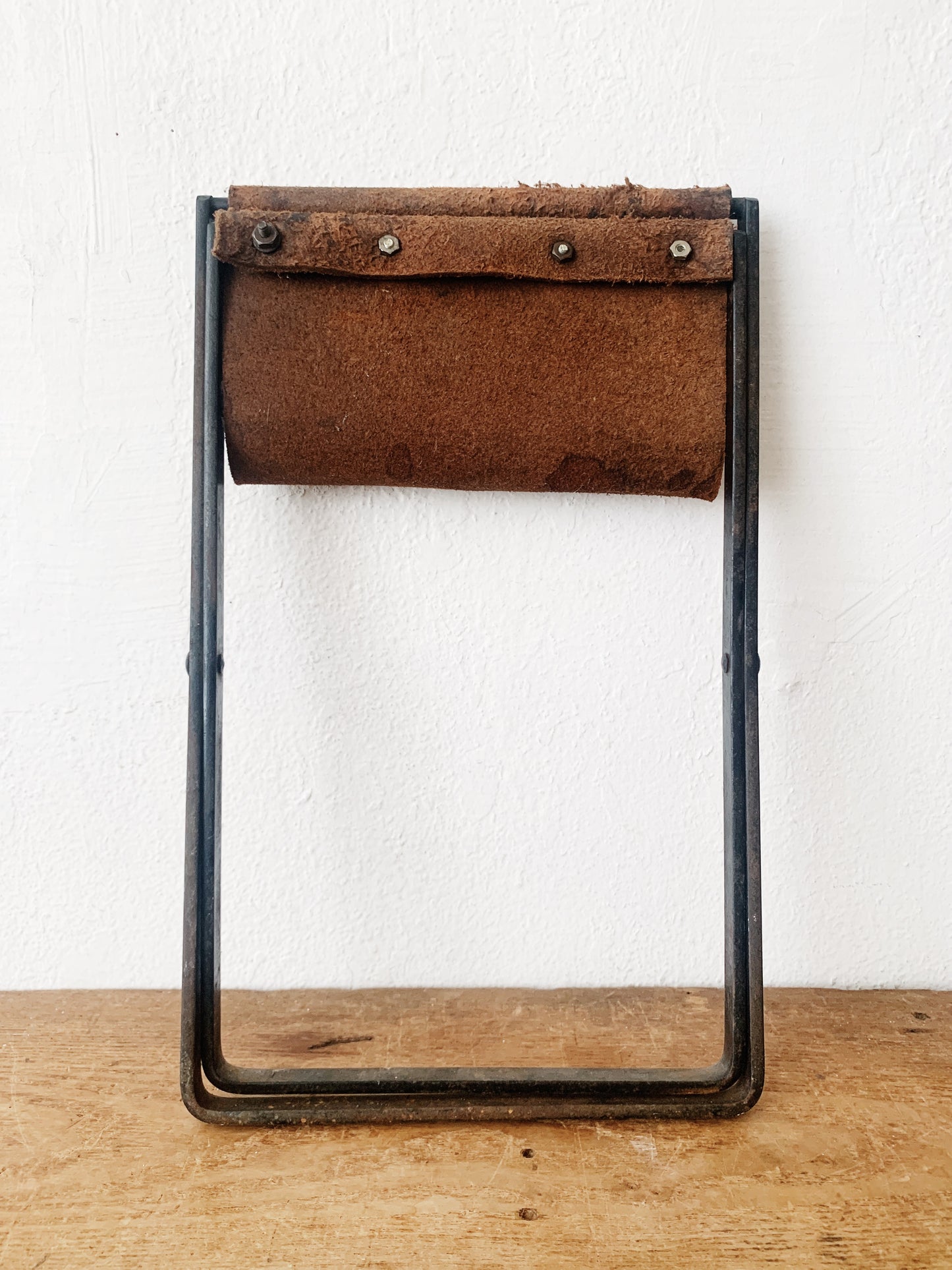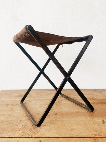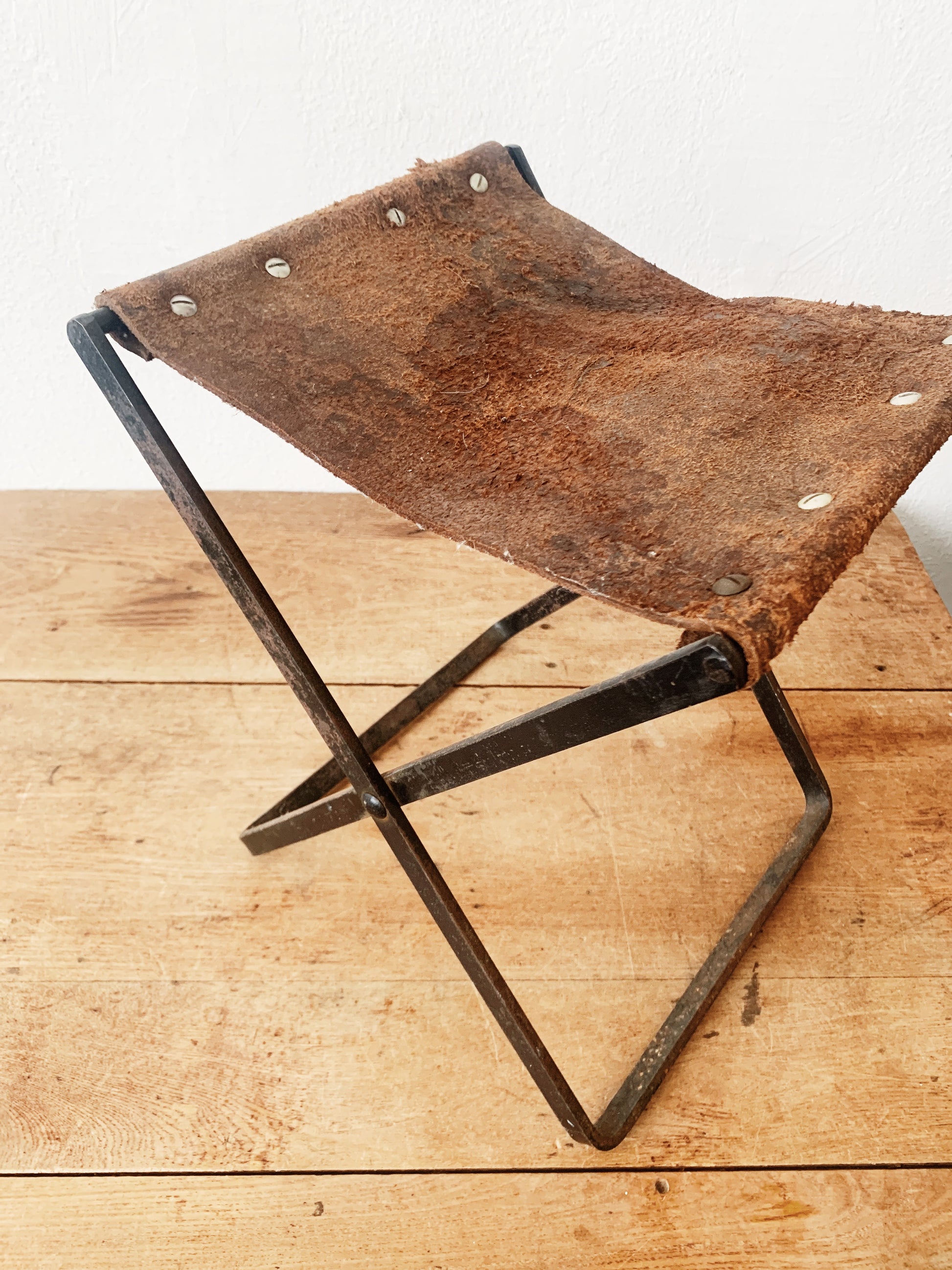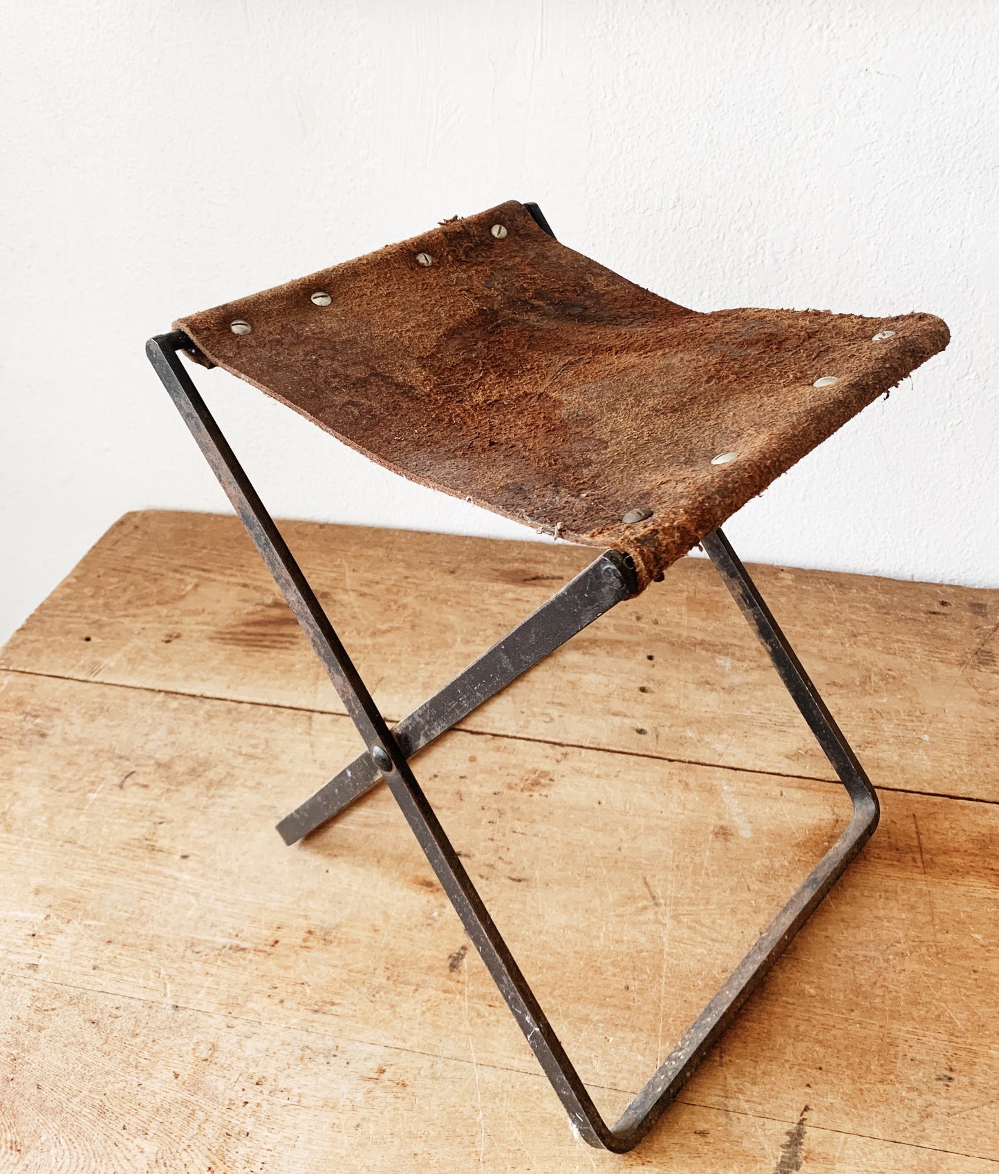 Sturdy iron frame with thick suede seat. Easily folds! A great alternative to the traditional folding wood camp stool.
