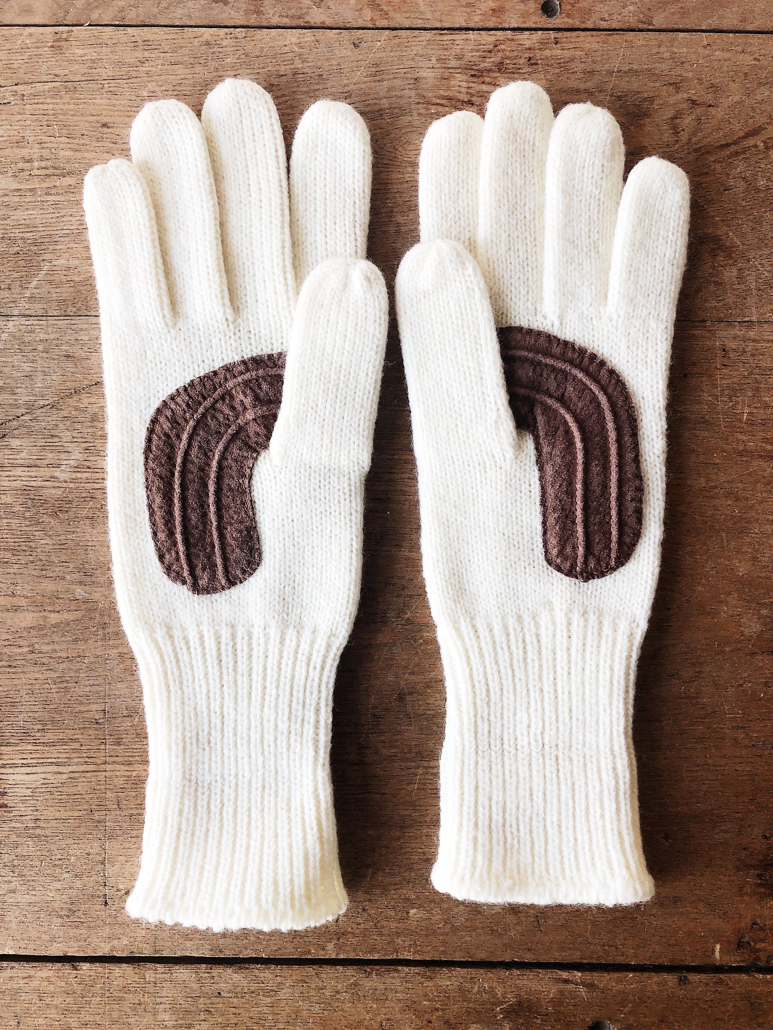 Lovely pair of vintage cream colored gloves. We really dig the suede grip patches especially.