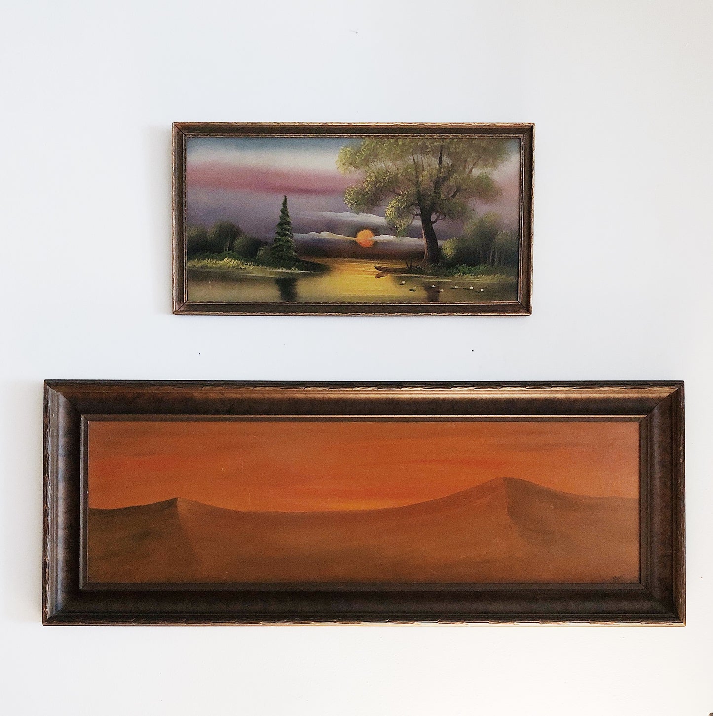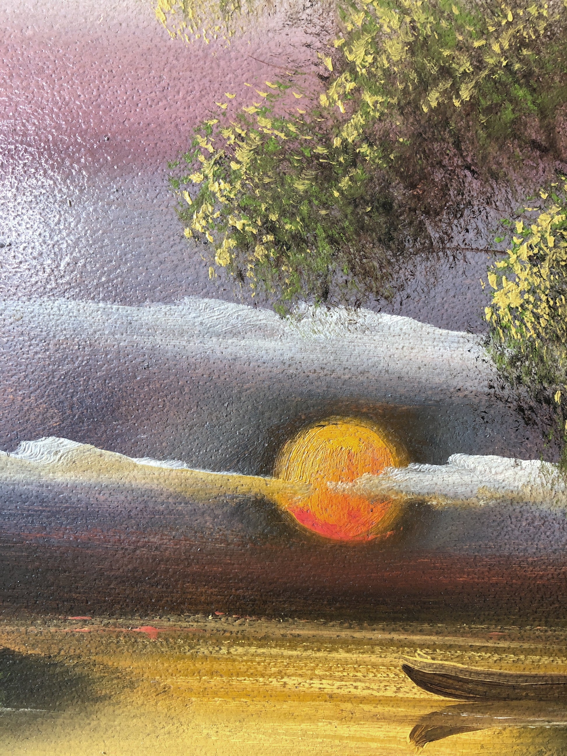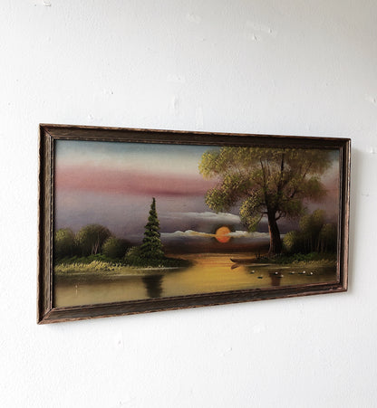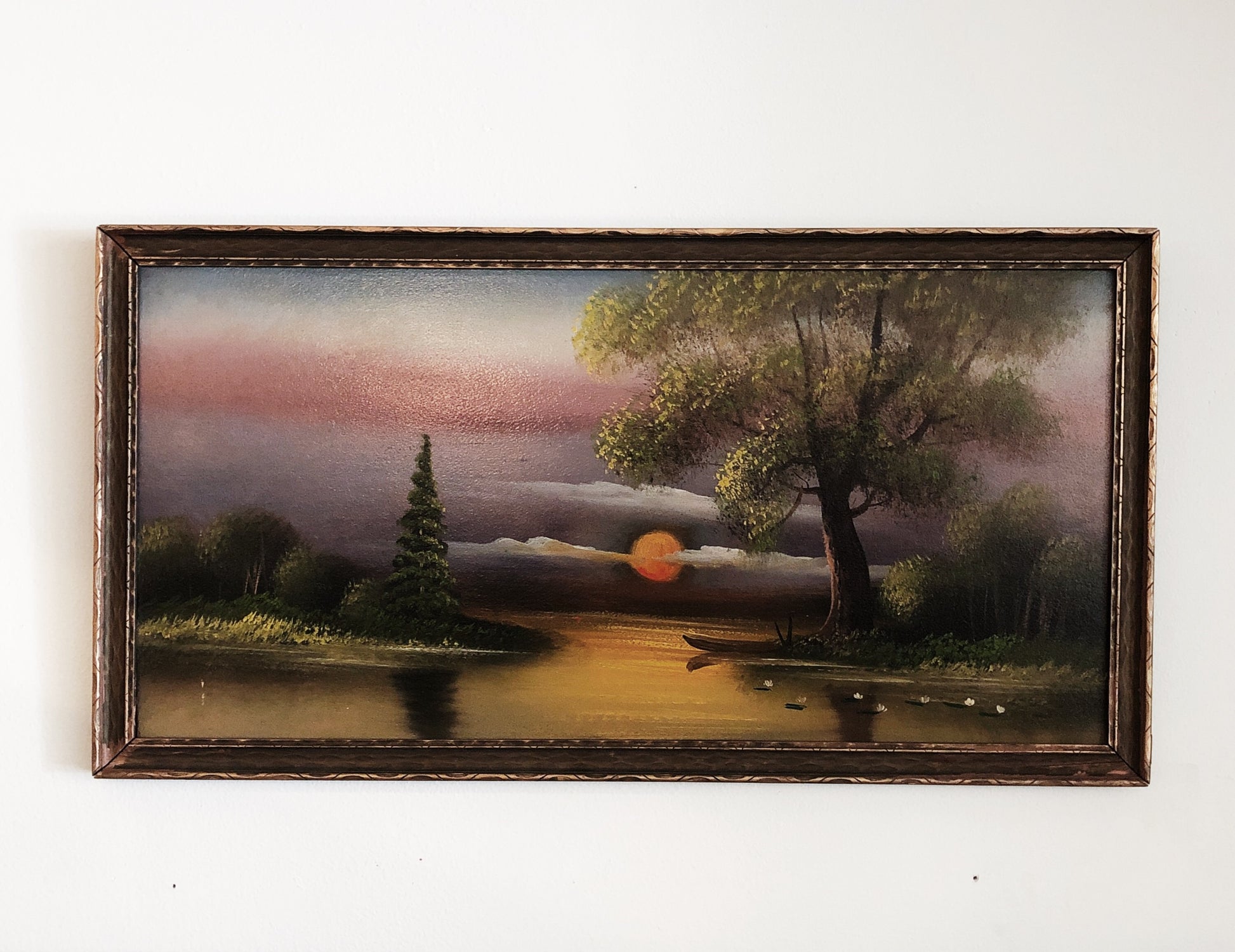 A gorgeous old oil painting in a lovely vintage frame. The colors here are simply beautiful. The water lilies might be my favorite part or maybe it’s the sunset sky? Either way the whole painting is just striking