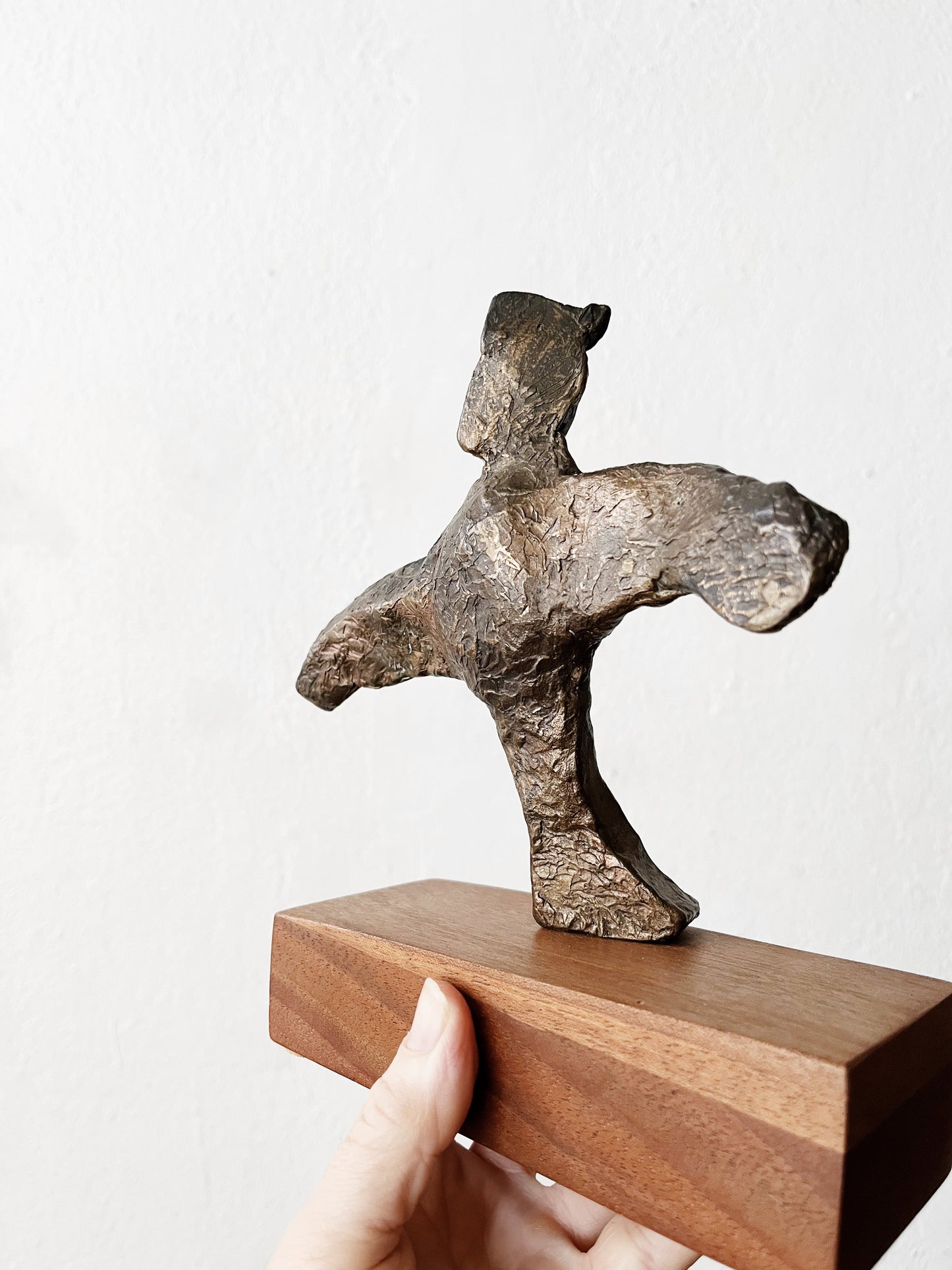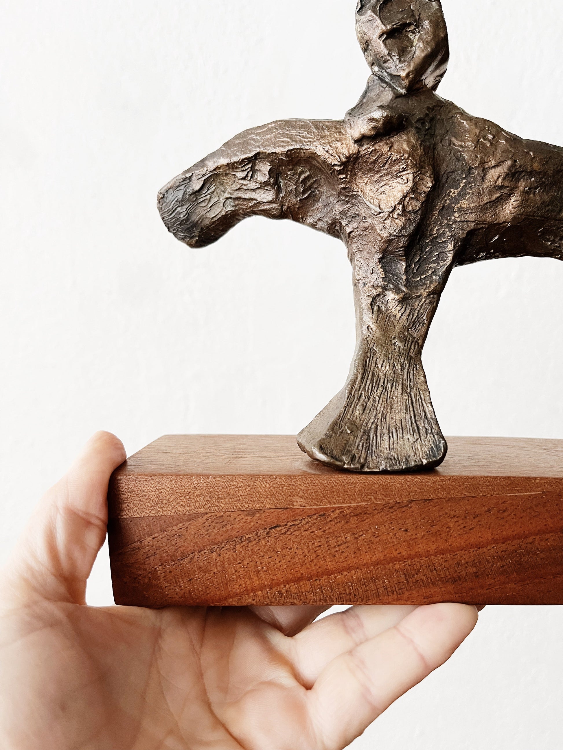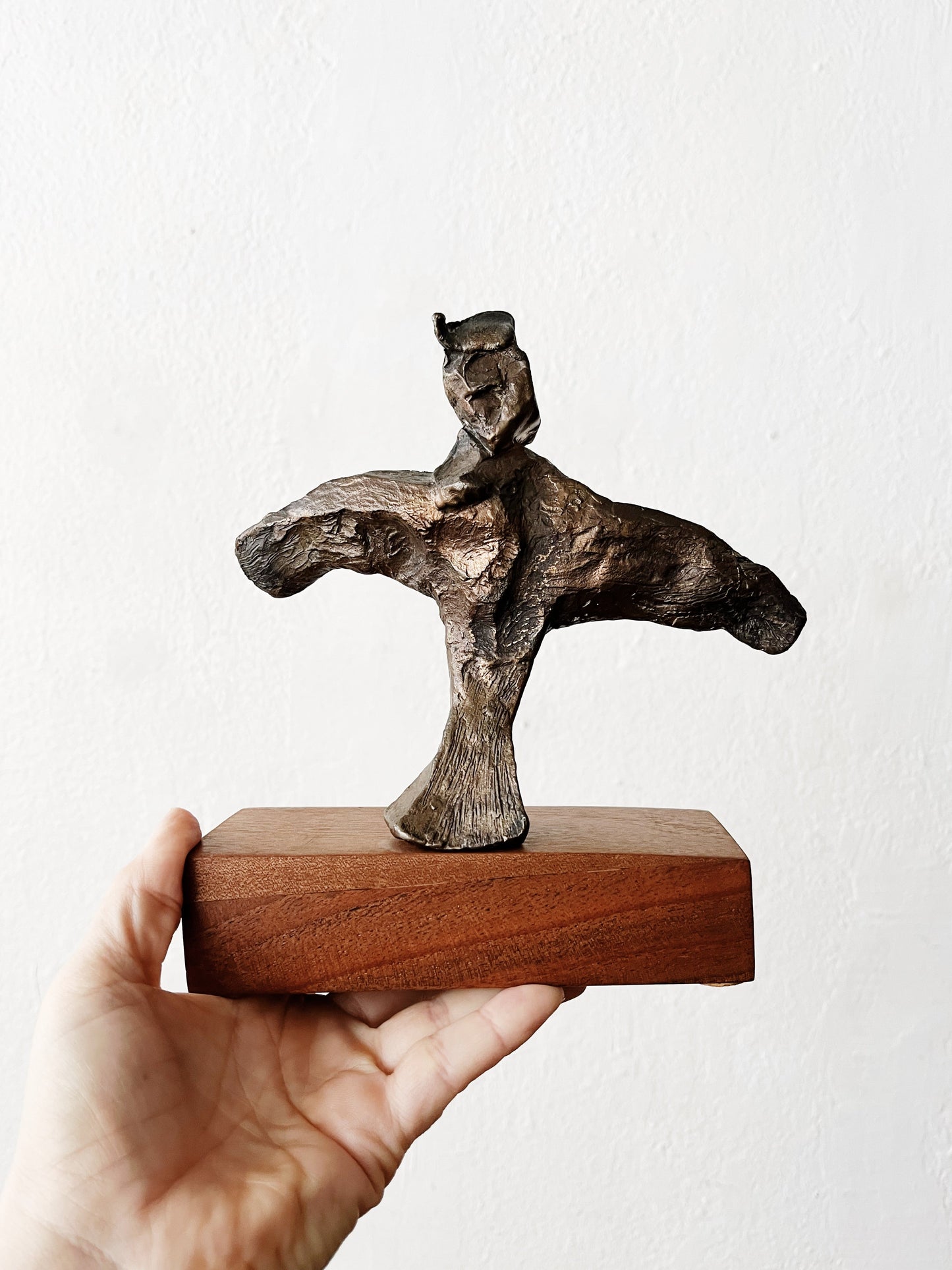 Stunning vintage bronze sculpture. Man as bird…wouldn’t it be lovely. On carved wood plinth. Signed J Whitehouse