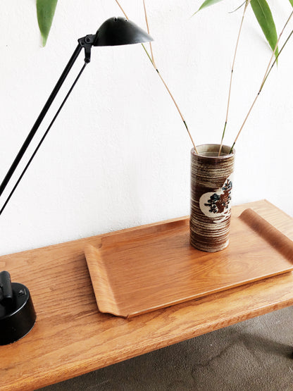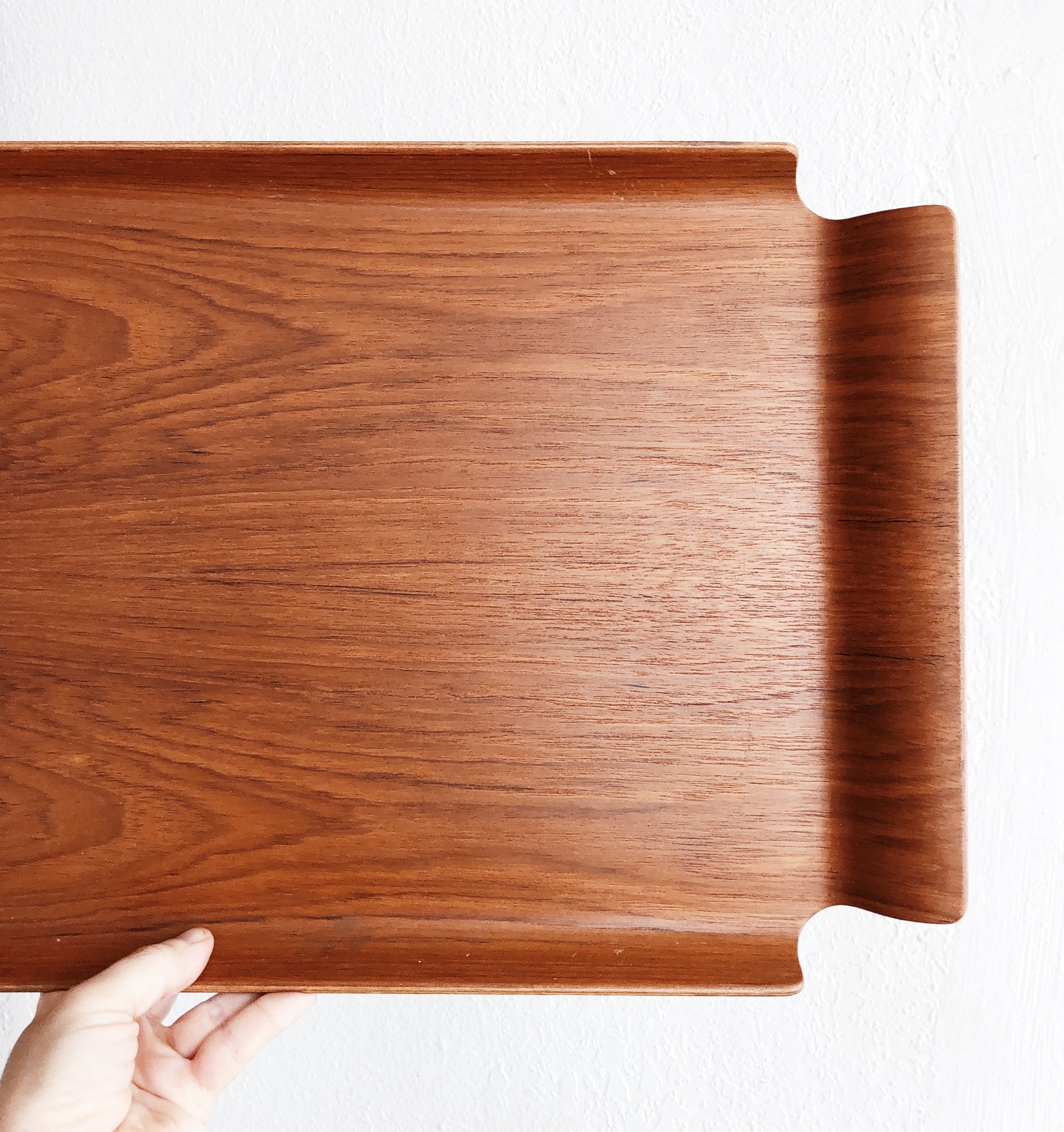 Bodafors teak bentwood tray designed by Bertil Fridhagen, Mid-Century Modern, Sweden, 1950-60s. Distinctive form with sloping handle borders on all sides with cut-out corners.