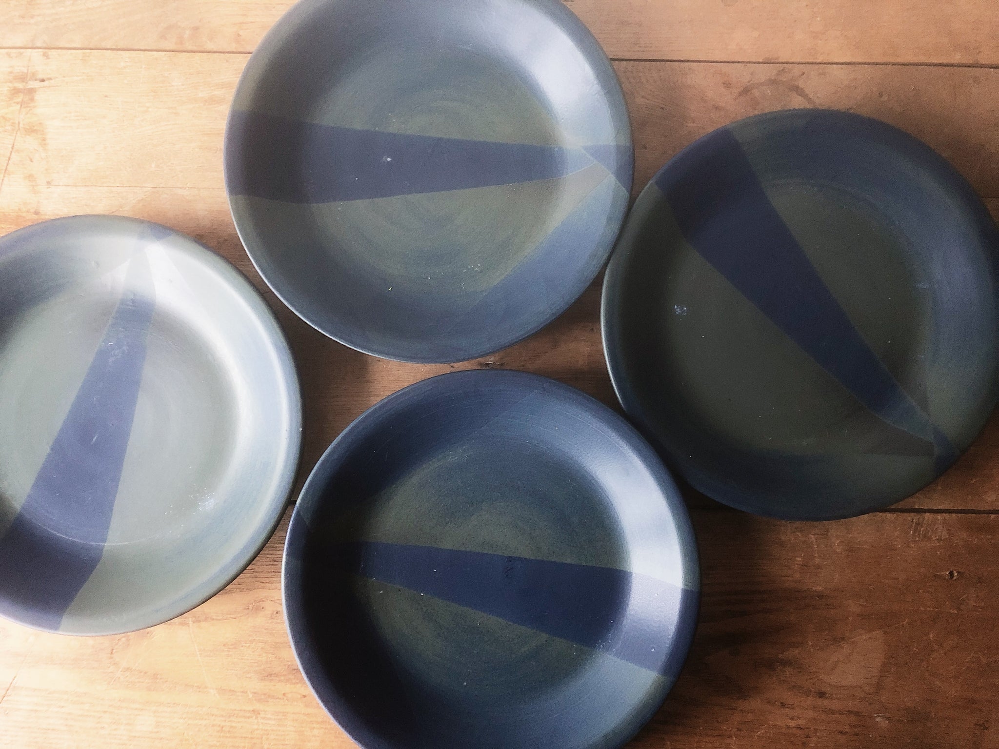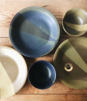 Vintage stoneware set from the mid century. Initial research shows this may be attributed to the early days of Nancy Patterson Lamb, creator of the beautiful and collectible Iron Mountain Stoneware, upon her travels to Taiwan.