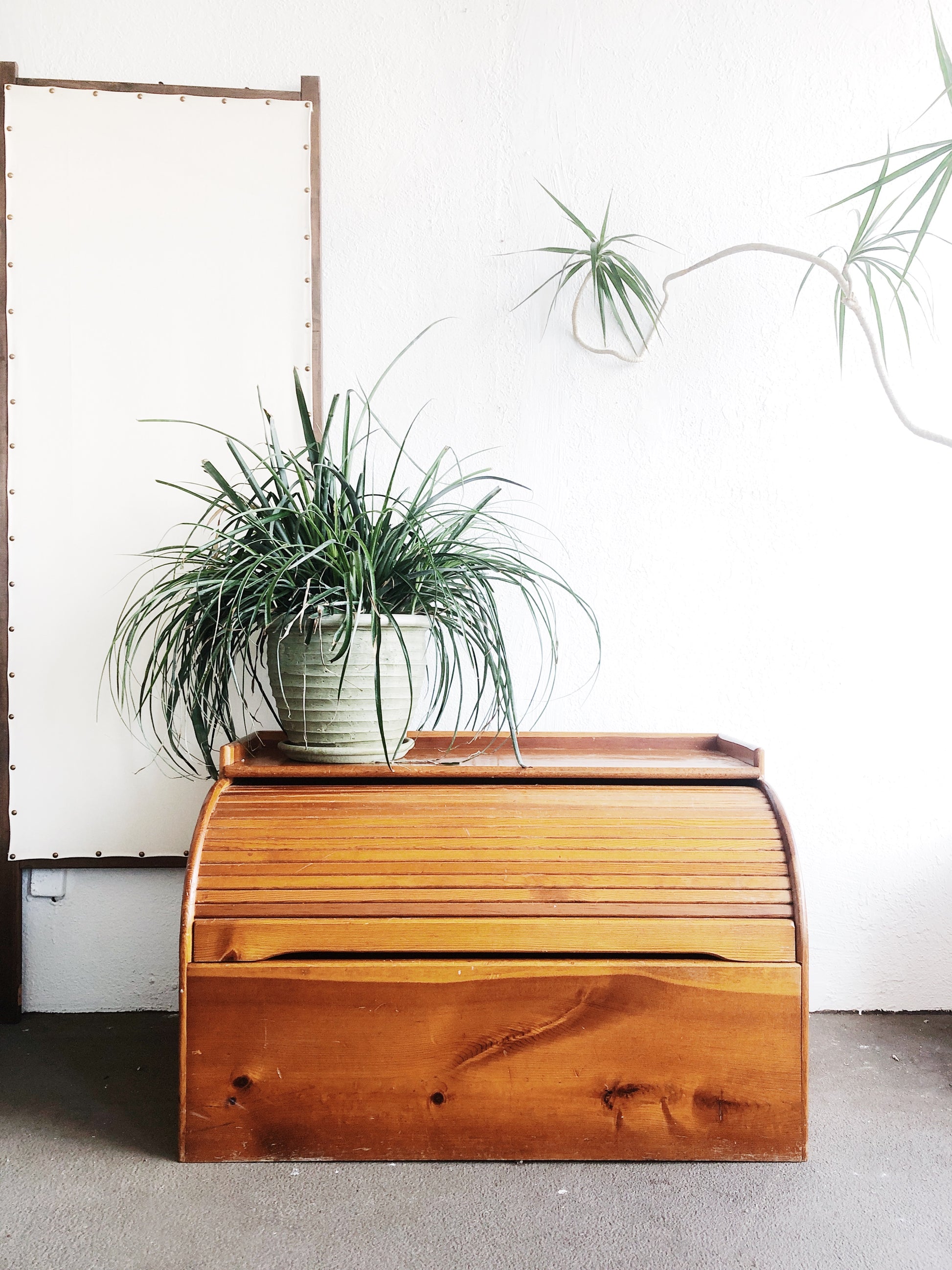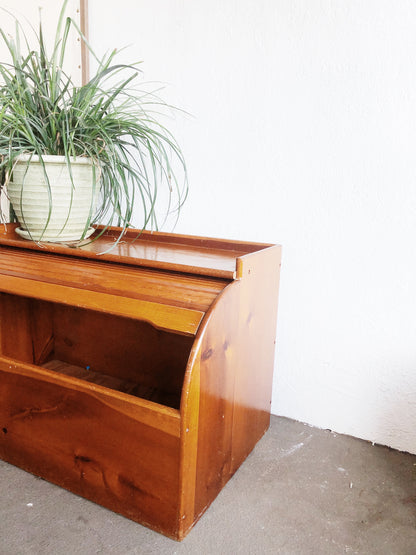 Fantastic trunk with tambour roll top opening. Shelf atop. Nice and roomy for toys, blankets, out of season clothes