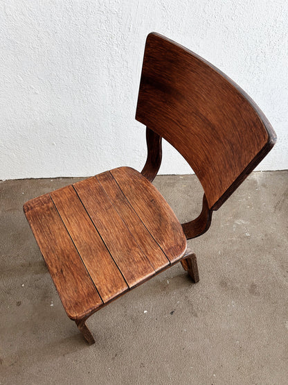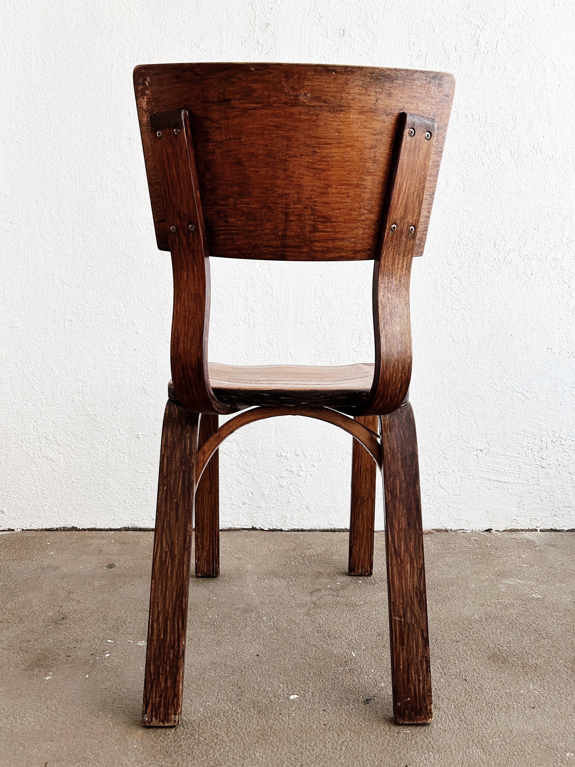 Such a great design and modern craft look to this Thonet style wood chair. Sturdy and in nice shape aside from the seat which is now separated planks- priced accordingly. Still comfortable, sturdy and handsome.