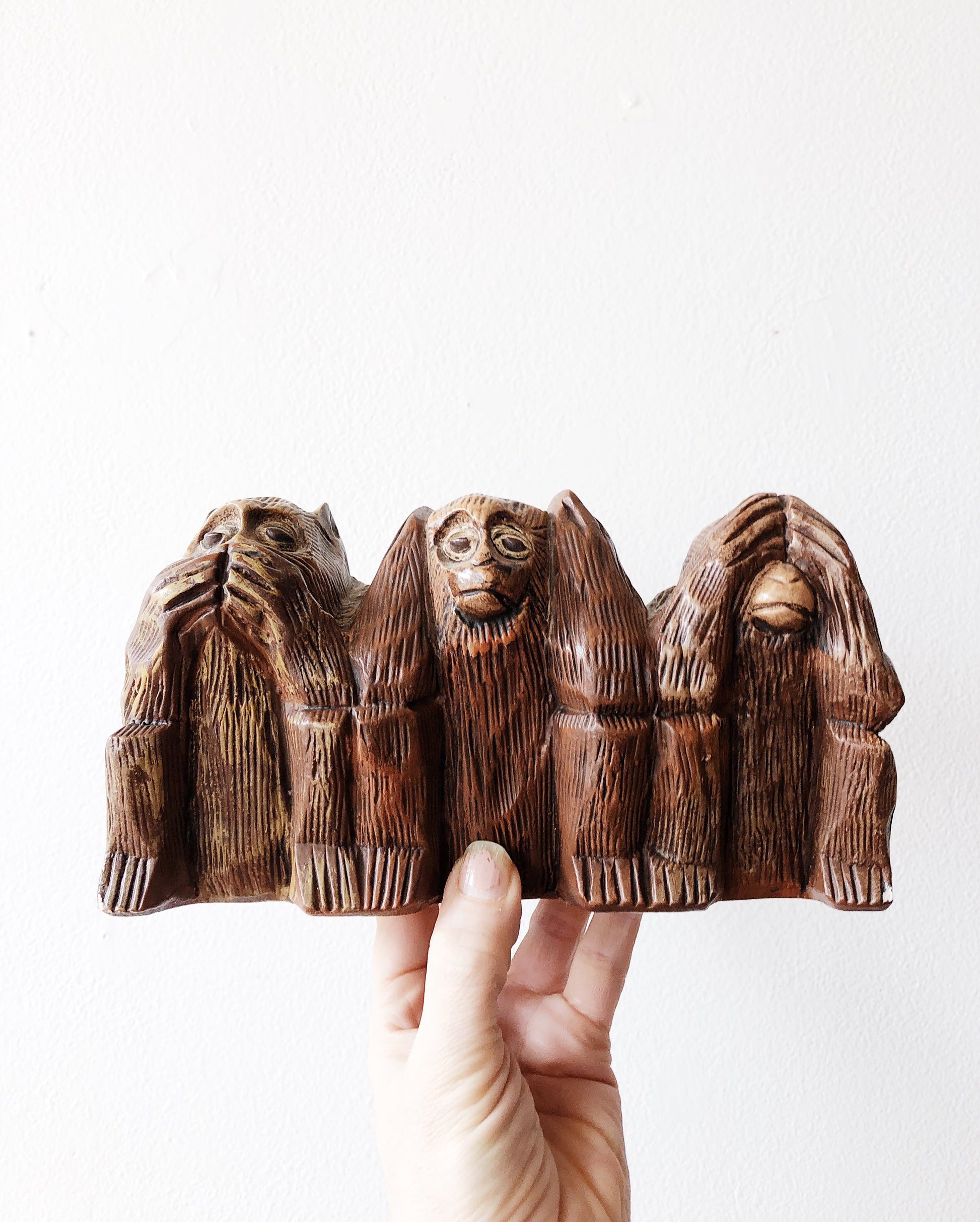You know the adage...hear, see, speak no evil. A Heavy vintage ceramic piece