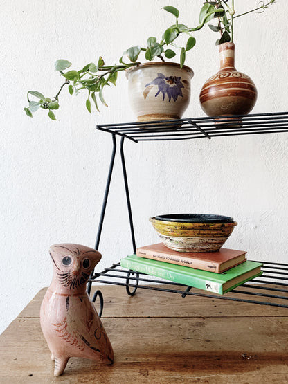 Wonderful vintage Tonala pottery owl, made in Me I o. Faded pink