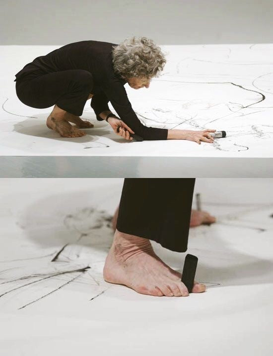 Tricia Brown, the artist at the forefront of the post modern dance movement and interpretive performance drawing. A signed by the artist poster of the dance company founded by her. Framed in metal and plexi