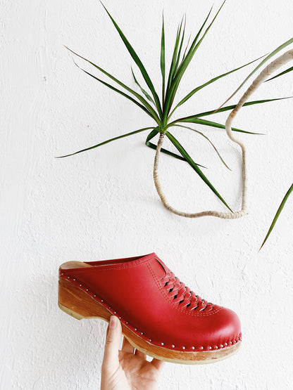 Vintage cherry red Troentorps clogs in excellent condition.