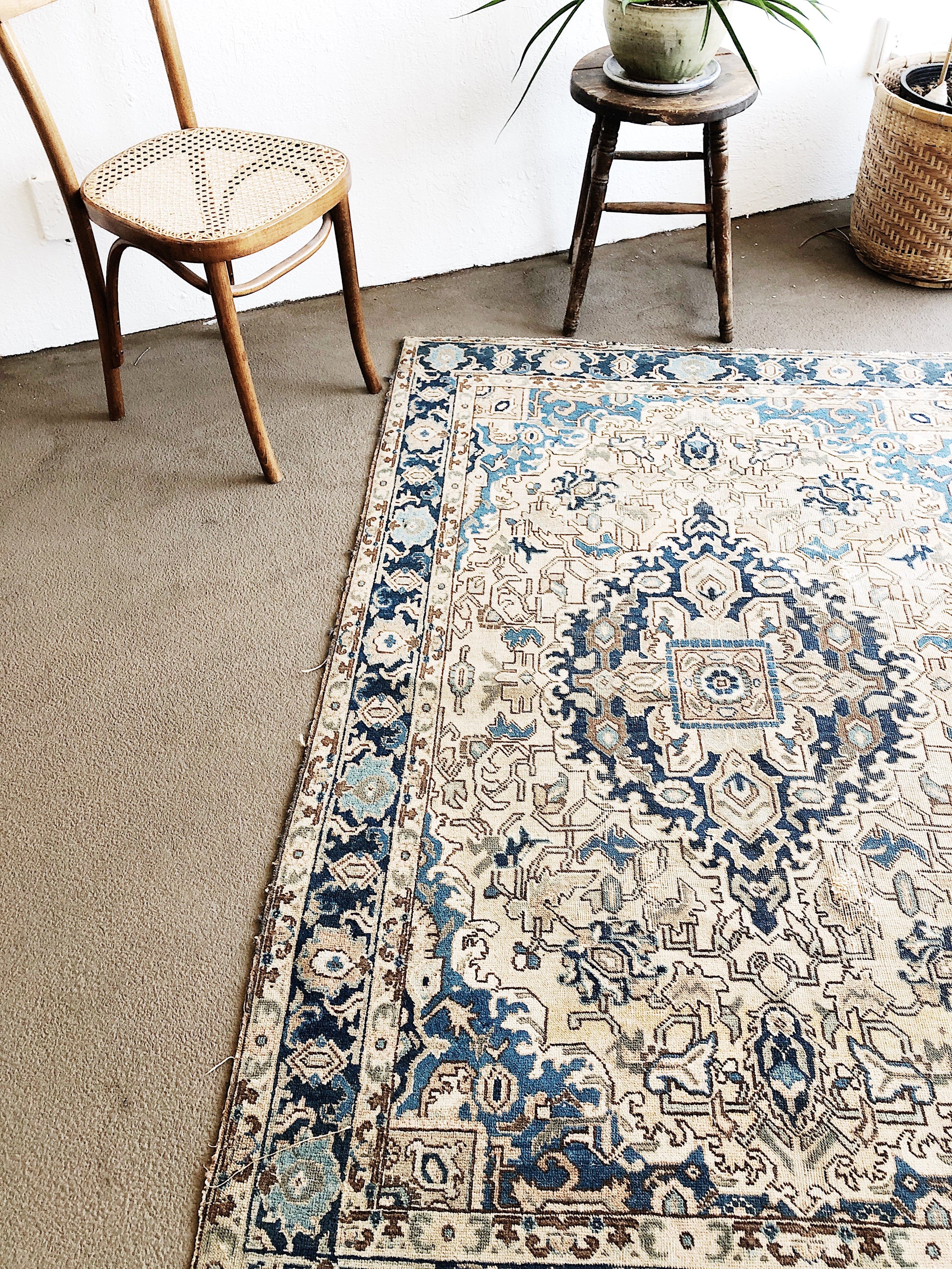 The most beautiful Turkish Rug just came in! Flat wool pile in a rare dual tone blue. The colors are perfectly faded and just right. In lovely condition with minimal wear
