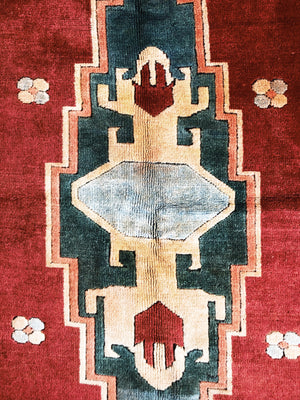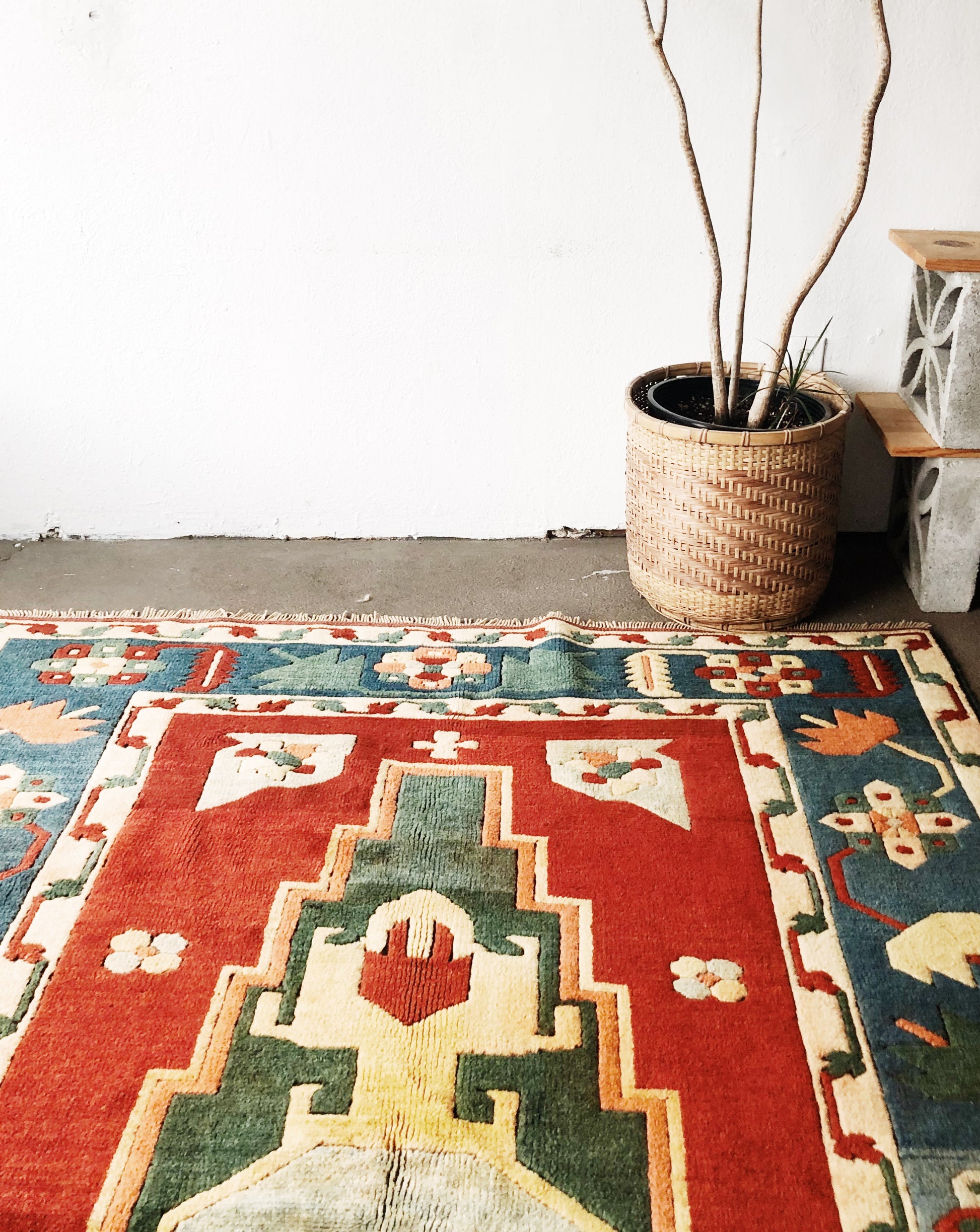Stunning medium pile Turkish rug with the softest under foot feel. Velvet-like without the sheen. The colors are gorgeous. There is some color bleed from age but nothing that attracts too badly. Knotted fringe trim. 100% wool