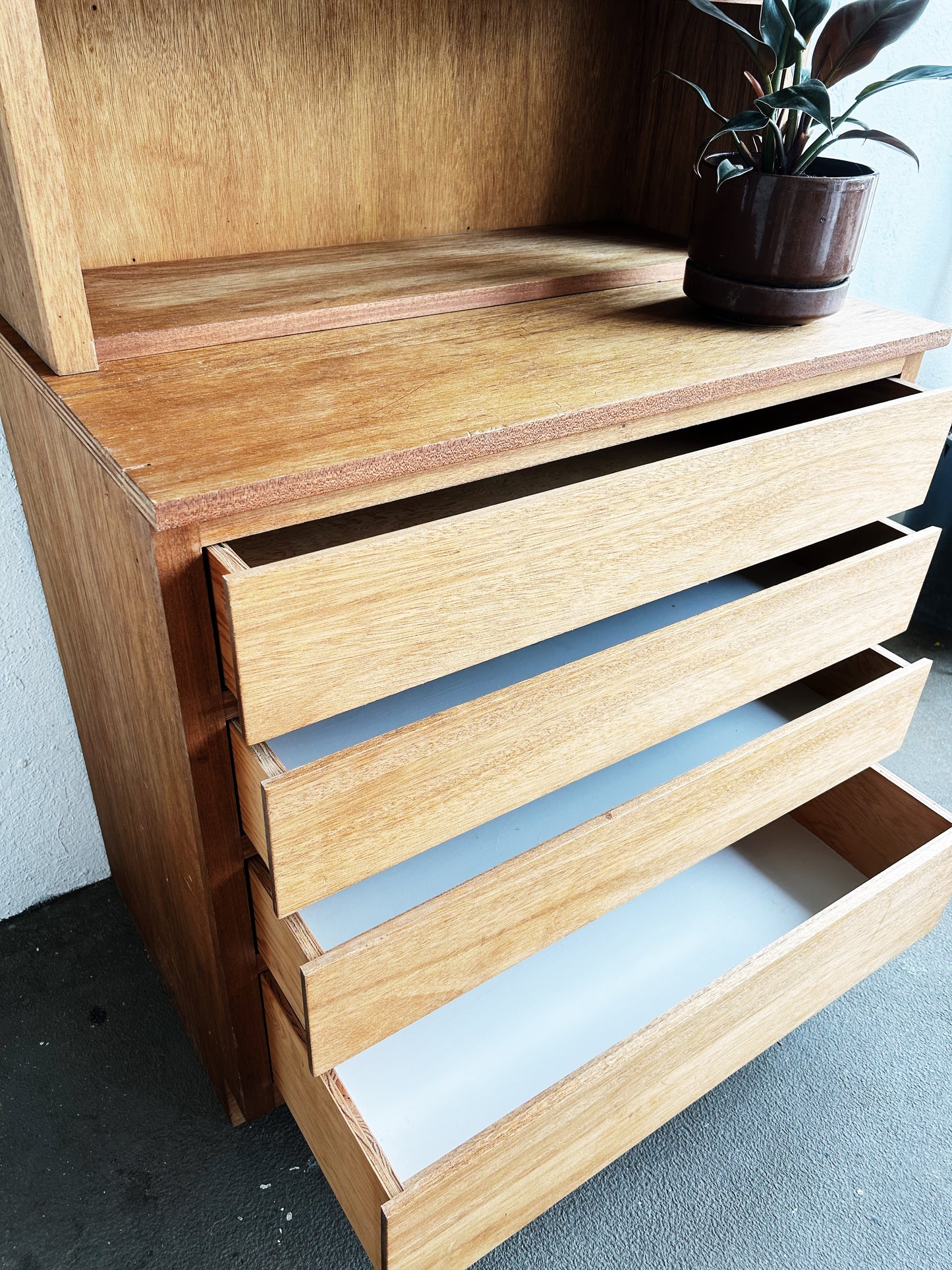 Gorgeous two piece solid wood hutch in excellent condition aside from a few minor dings and scratches to the wood. Nothing that detracts. She’s a beauty with a small footprint. A versatile piece that works in the dining area, entry or bedroom just to name a few.