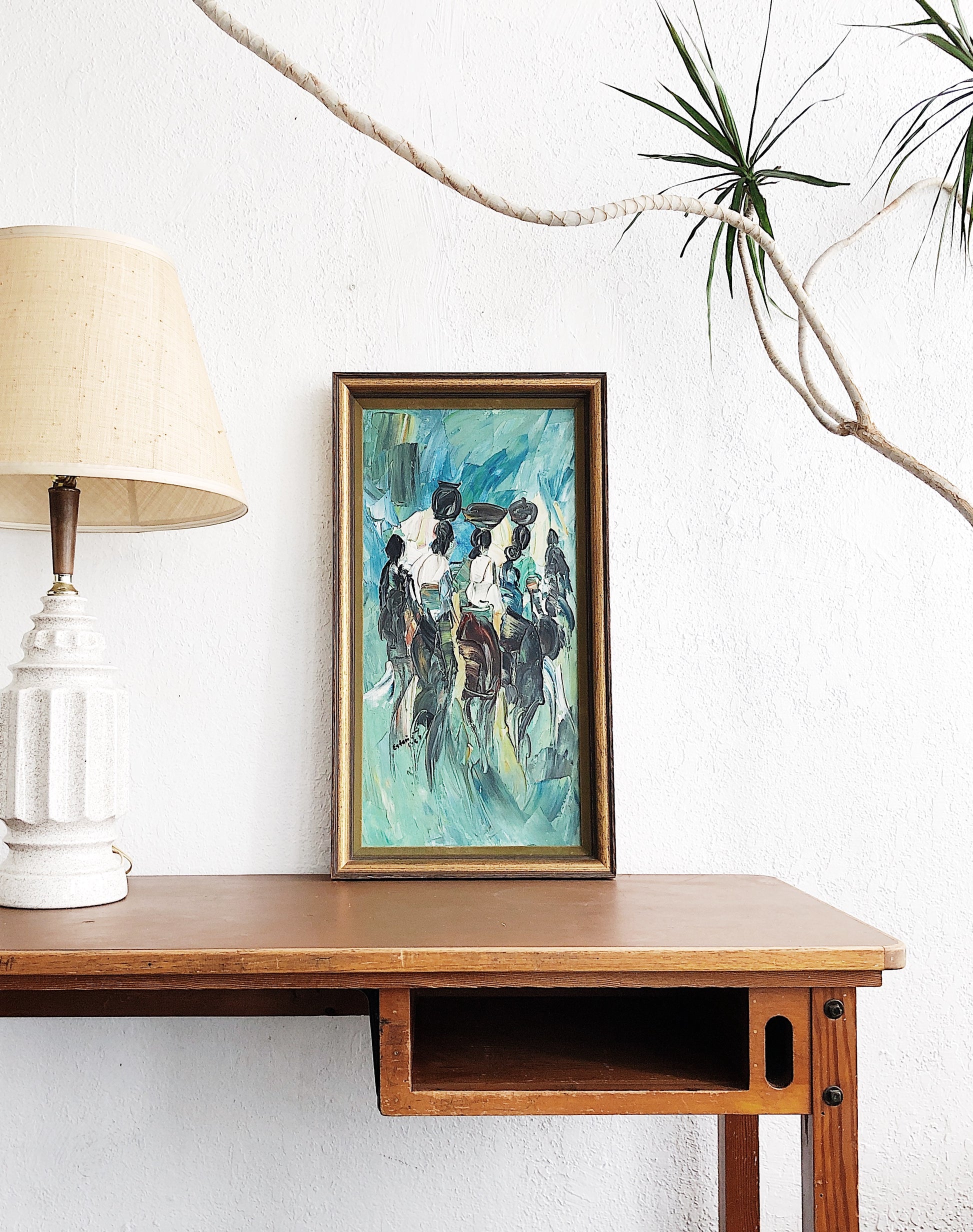 An older desk / work station from University of Portland science laboratory. Open spaces for storage. Nice parsons style leg. Mellow wood is aged. Leather look top is a soft Lino , has some wear but we don’t mind it at all. Nice compact size for an old desk