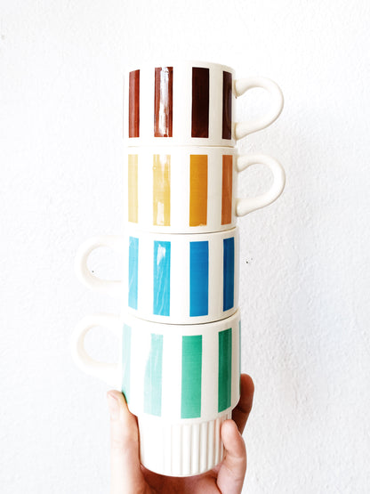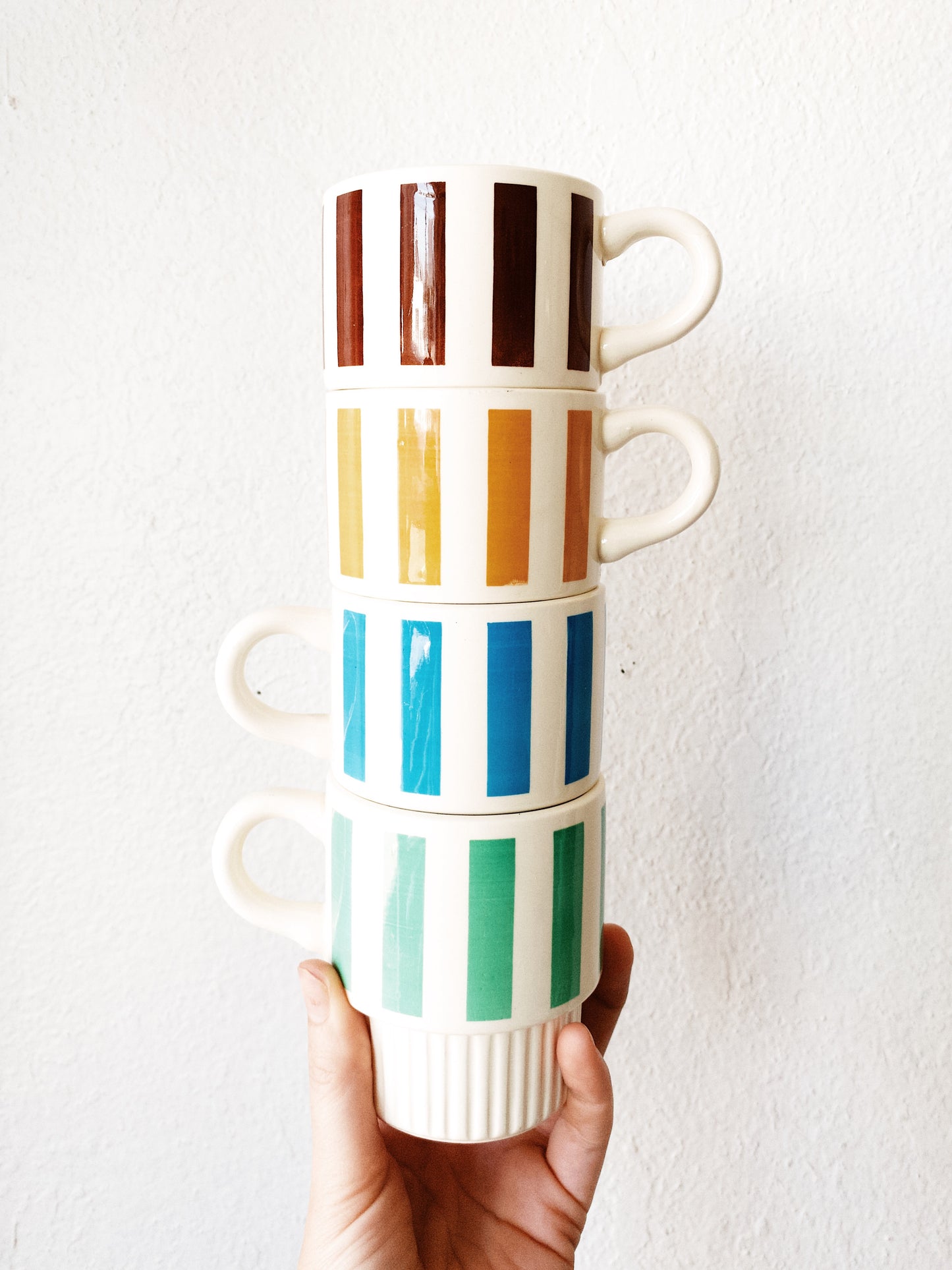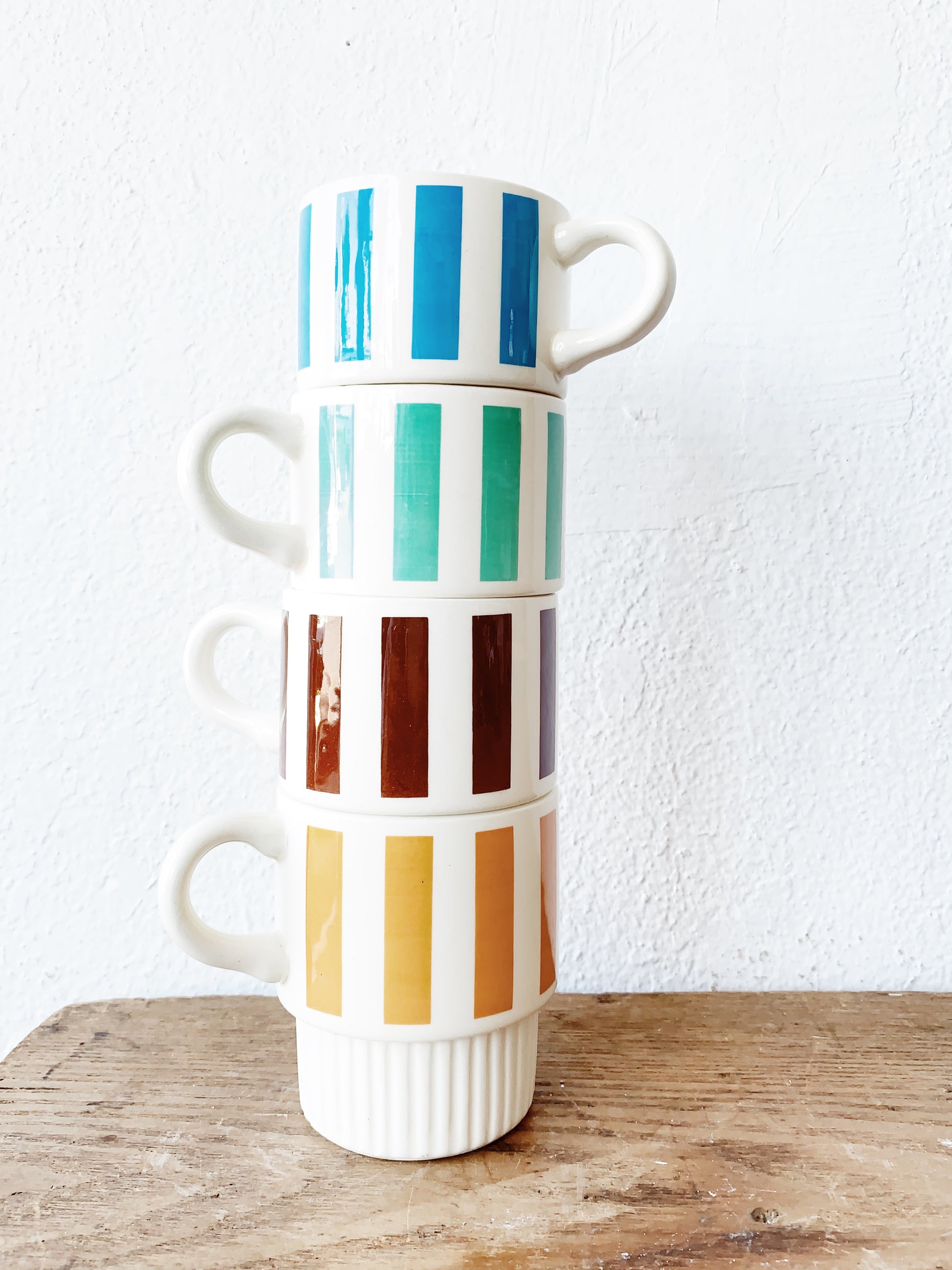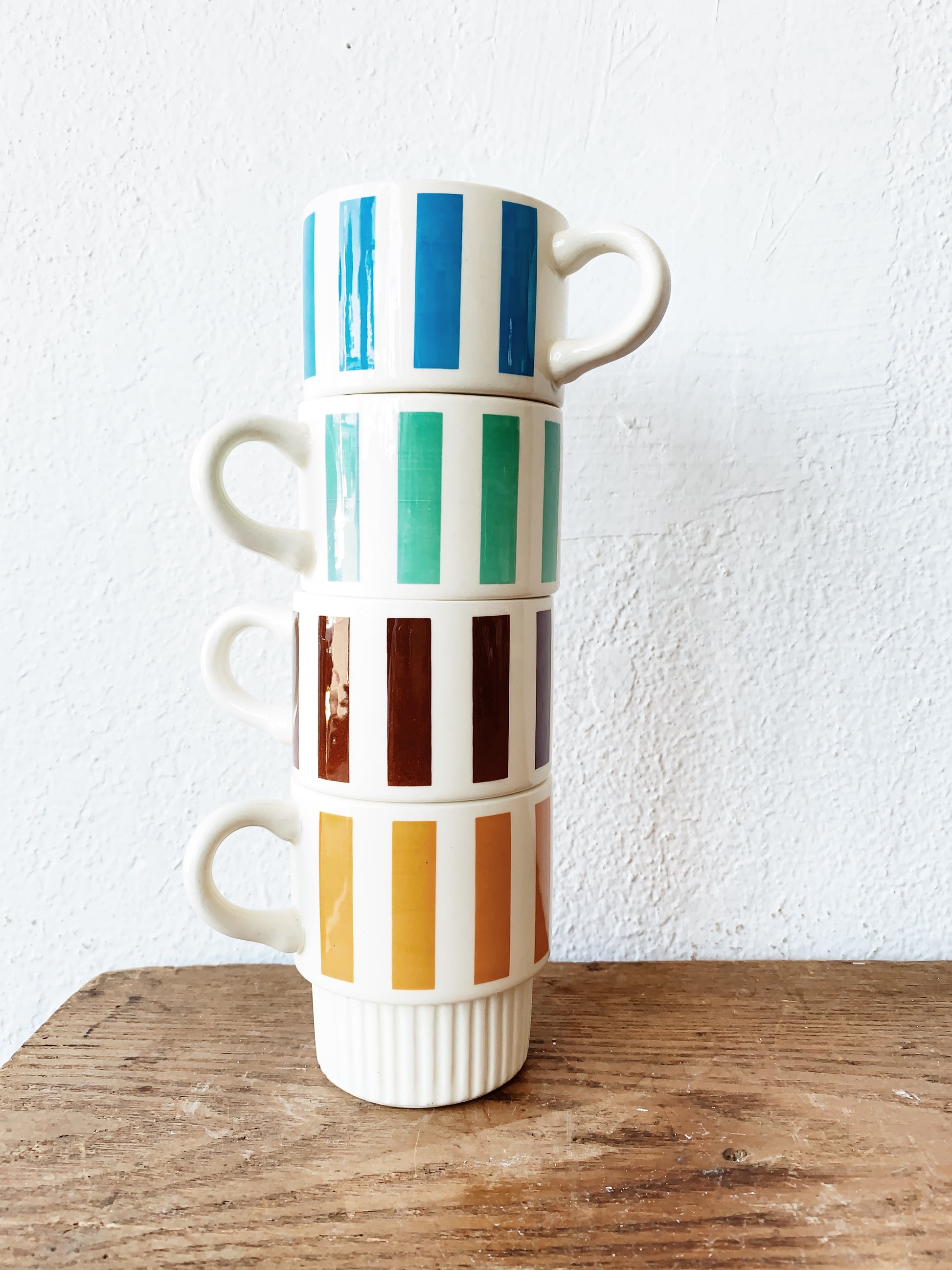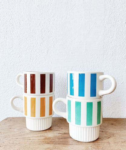 Vintage USA ware mugs, fun stripes! Set of four, stacking.
