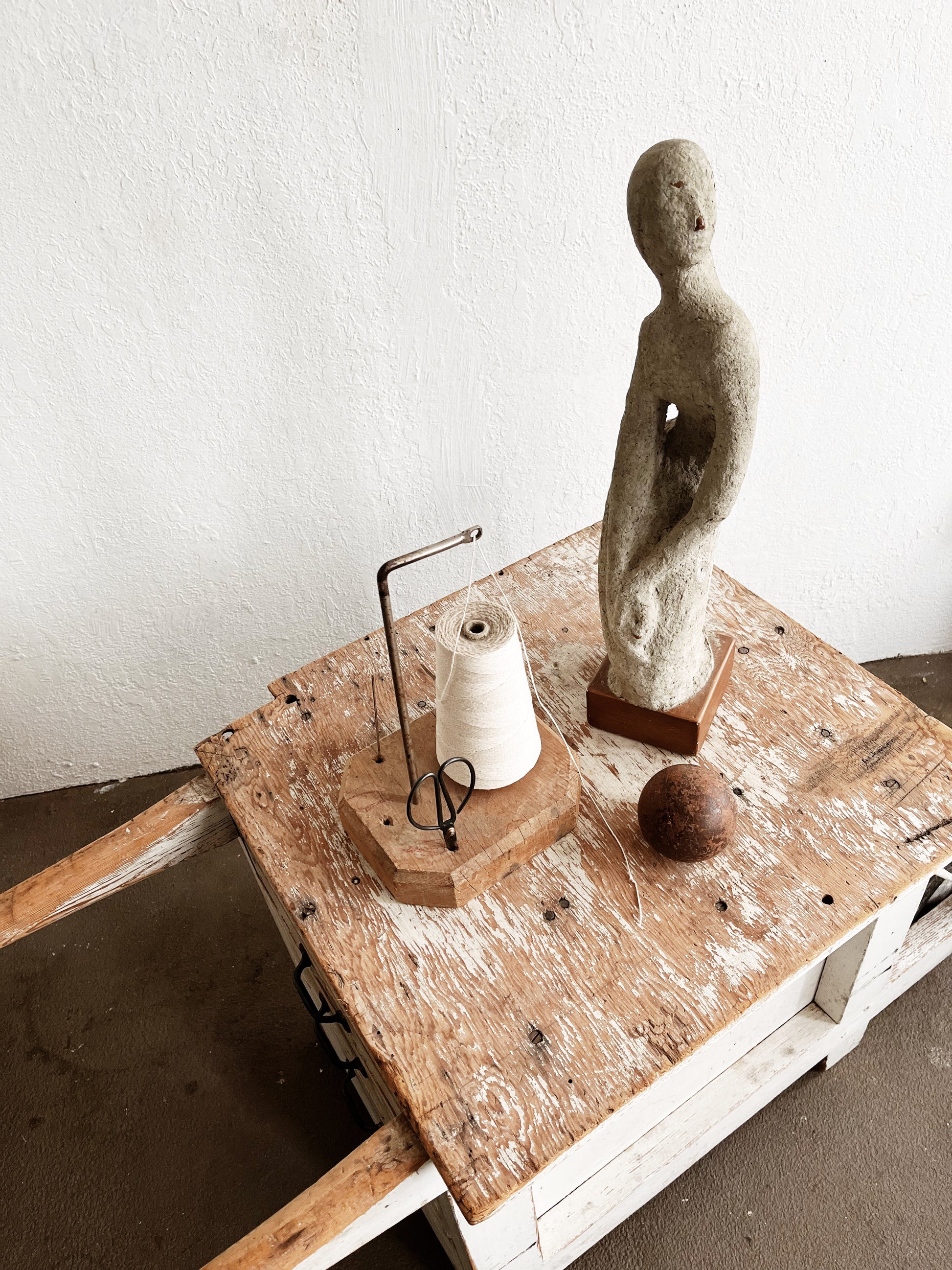 Very cool rustic find. Wooden utility cart, handmade. Three bin style drawers. Larger wheels and handles. We can think of a number of ways to use this. It’s sturdy, rustic and the wheels turn easily.