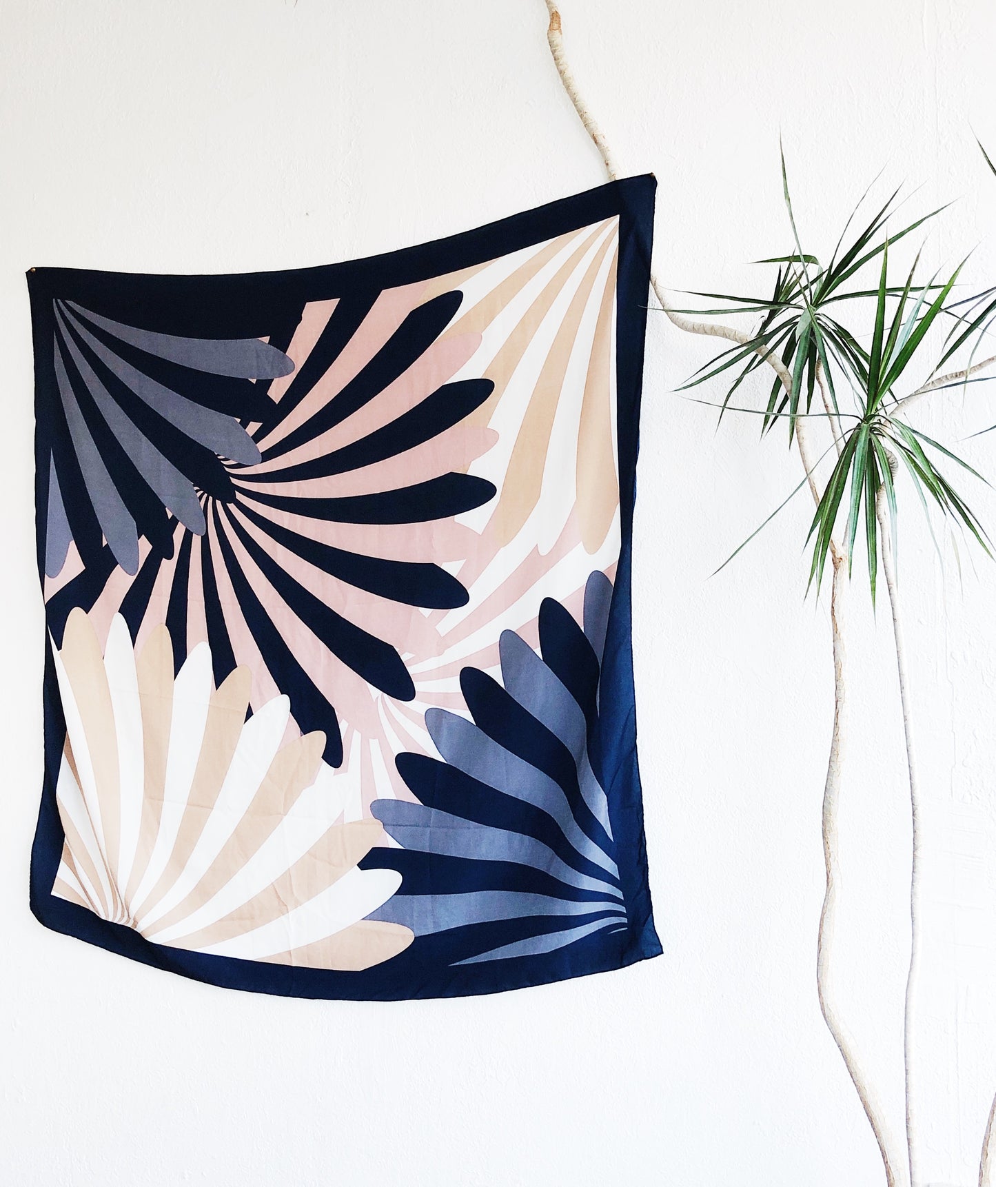 Gorgeous pattern on this oversized scarf/wrap. Vintage 1960s in a silk blend.