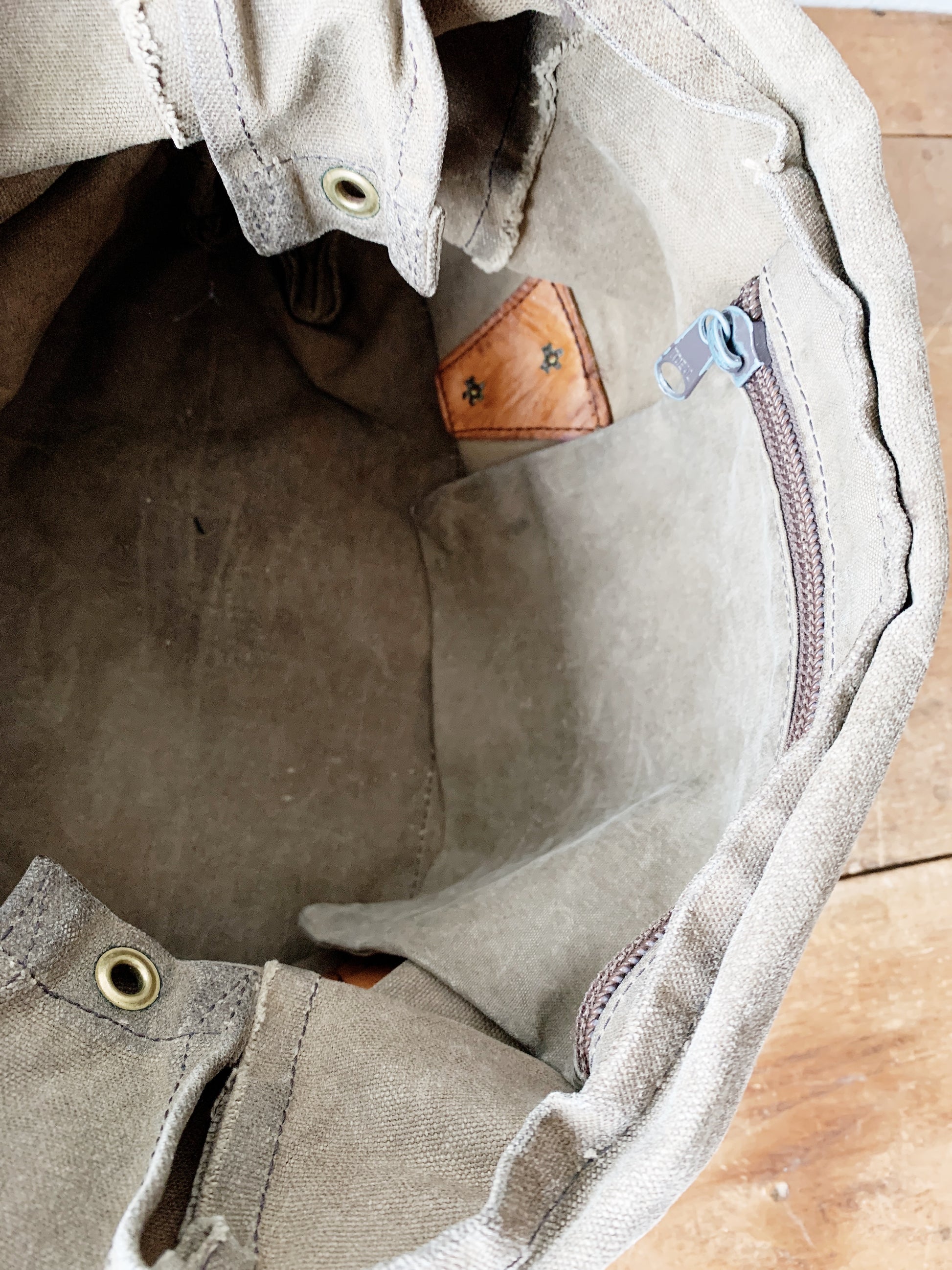 Really great waxed canvas backpack by Frost River Duluth, Minnesota. Perfectly rugged and broken in, leather straps and internal zip pocket.