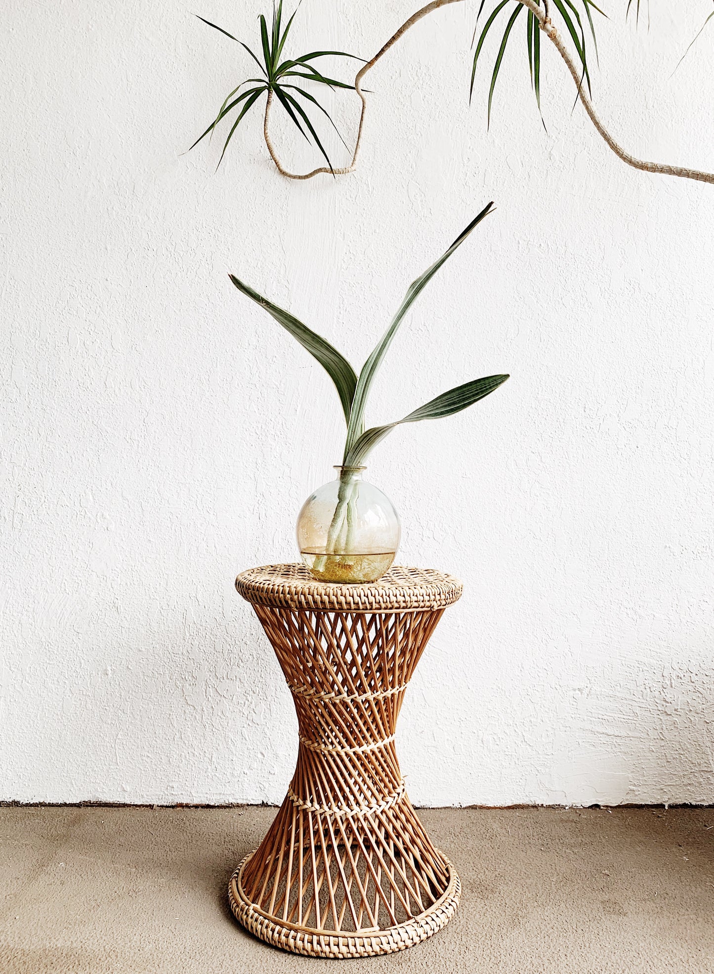 Lovely vintage wicker stand with caned top. Excellent condition. Works well as a small side table or plant stand.